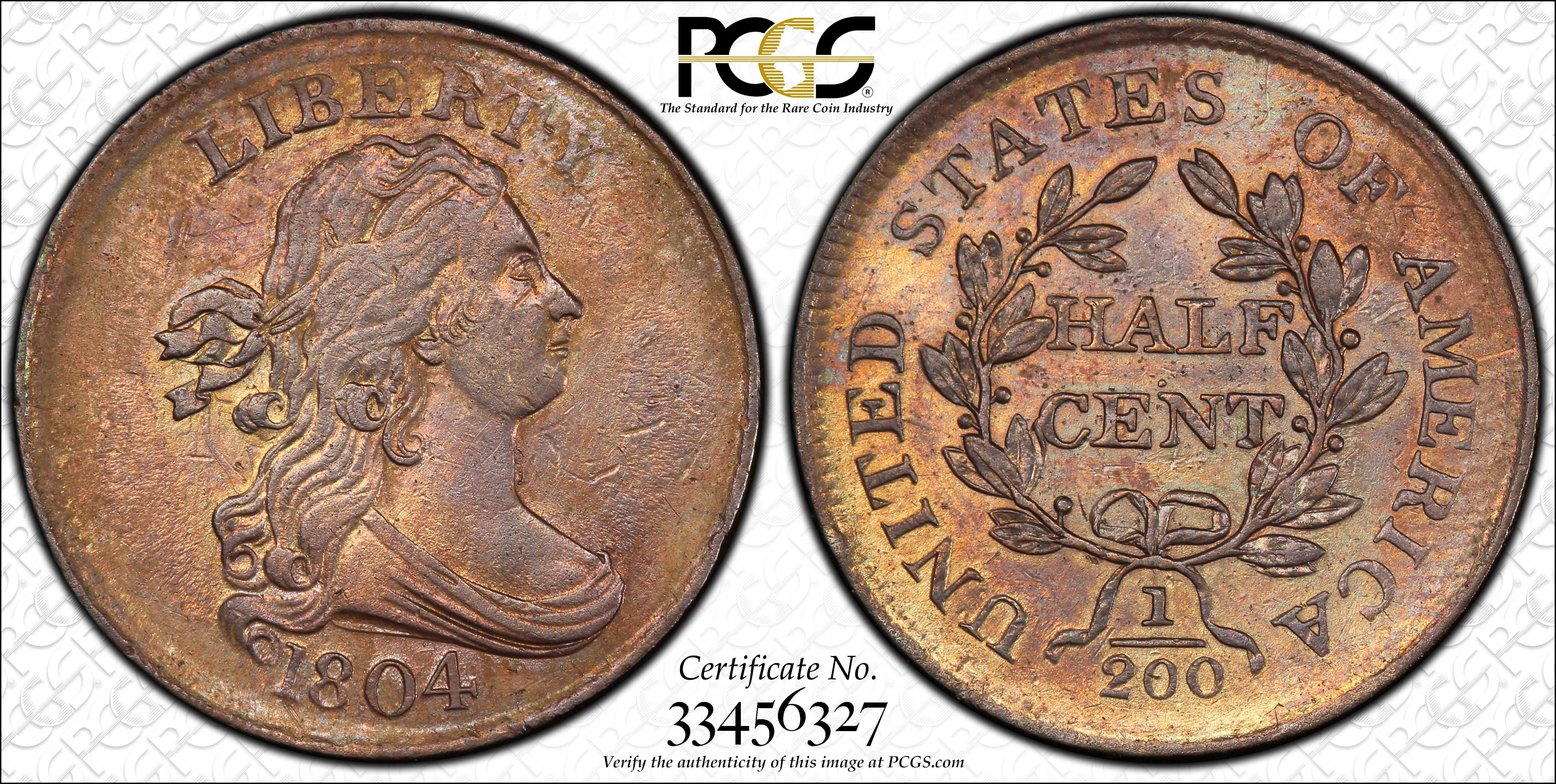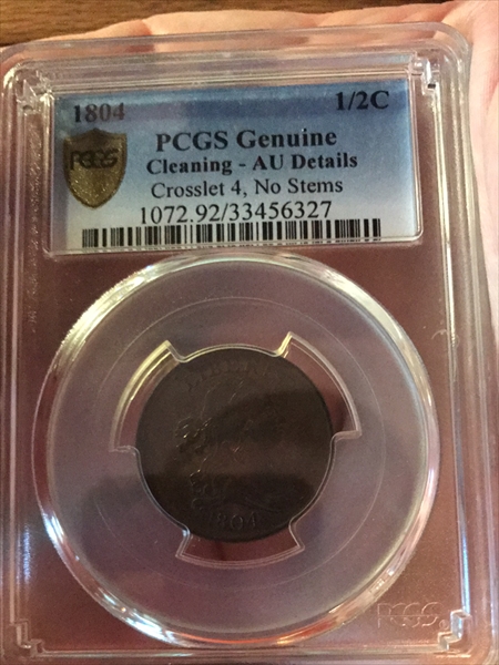1804 1/2C Crosslet 4, No Stems, BN N1BN 认证号33456327, PCGS号1072