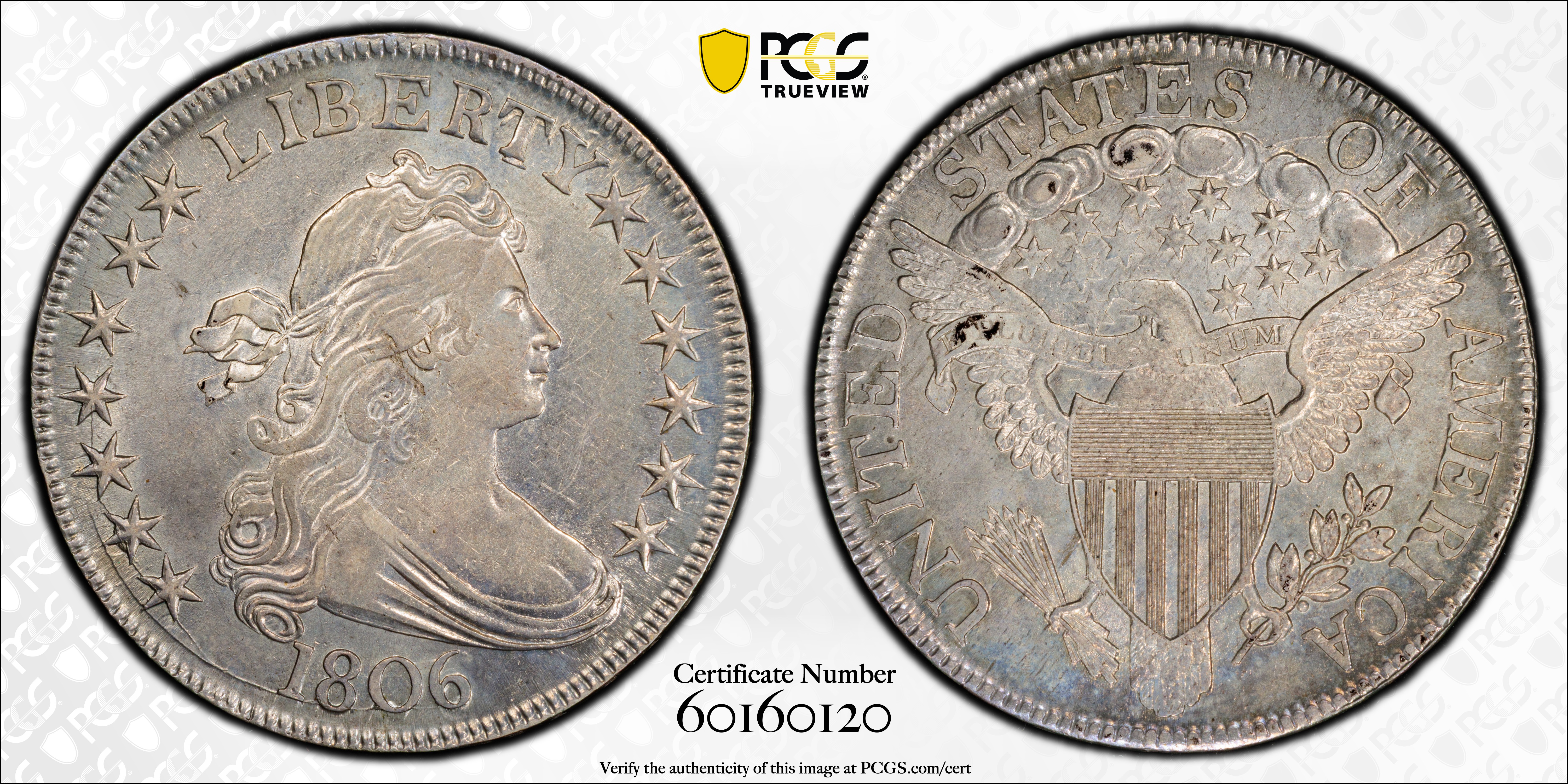 1806 50C Pointed 6, Stem AU55 认证号60160120, PCGS号6071