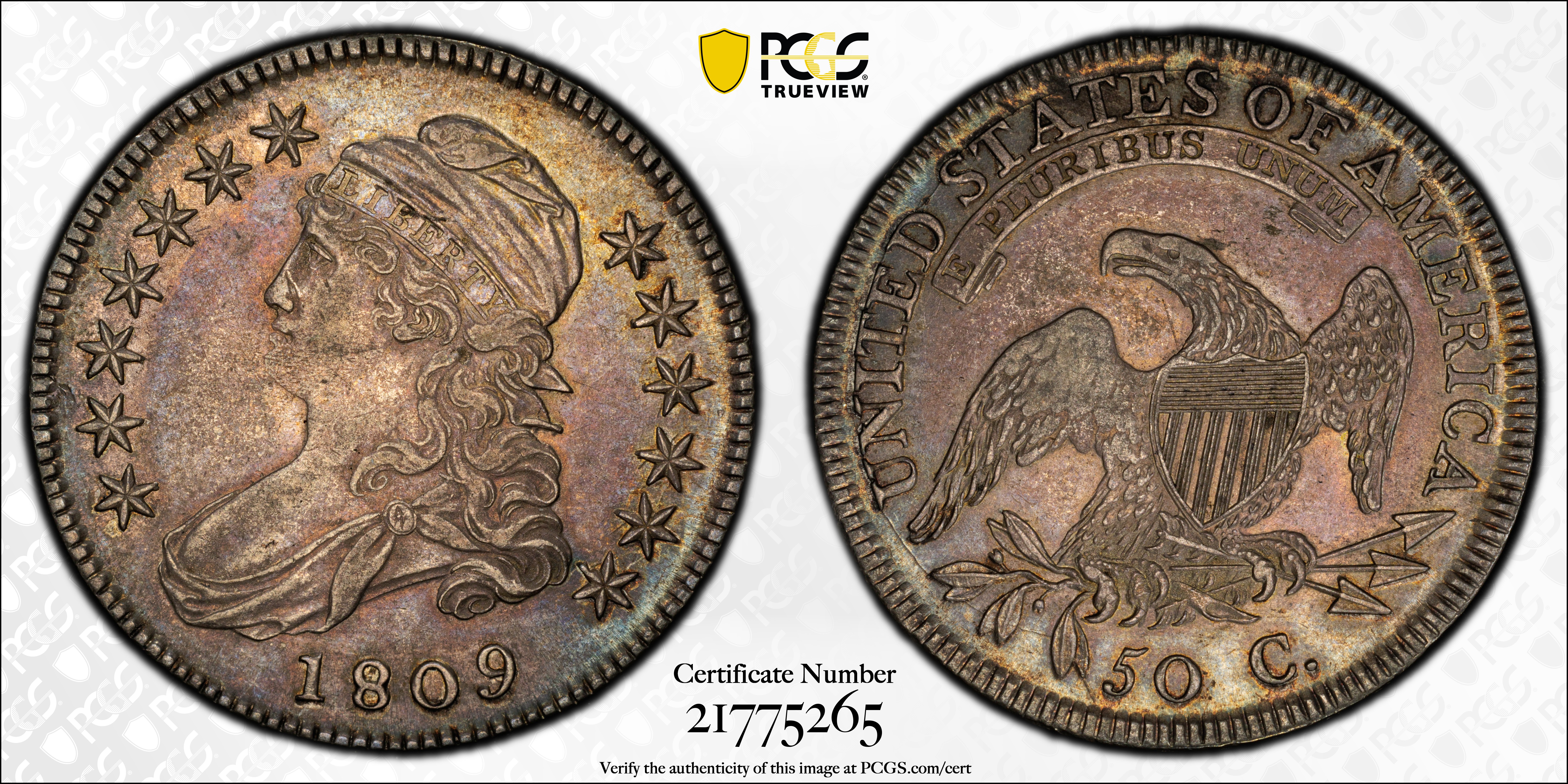 1809 50C O-105 AU50 认证号21775265, PCGS号39394