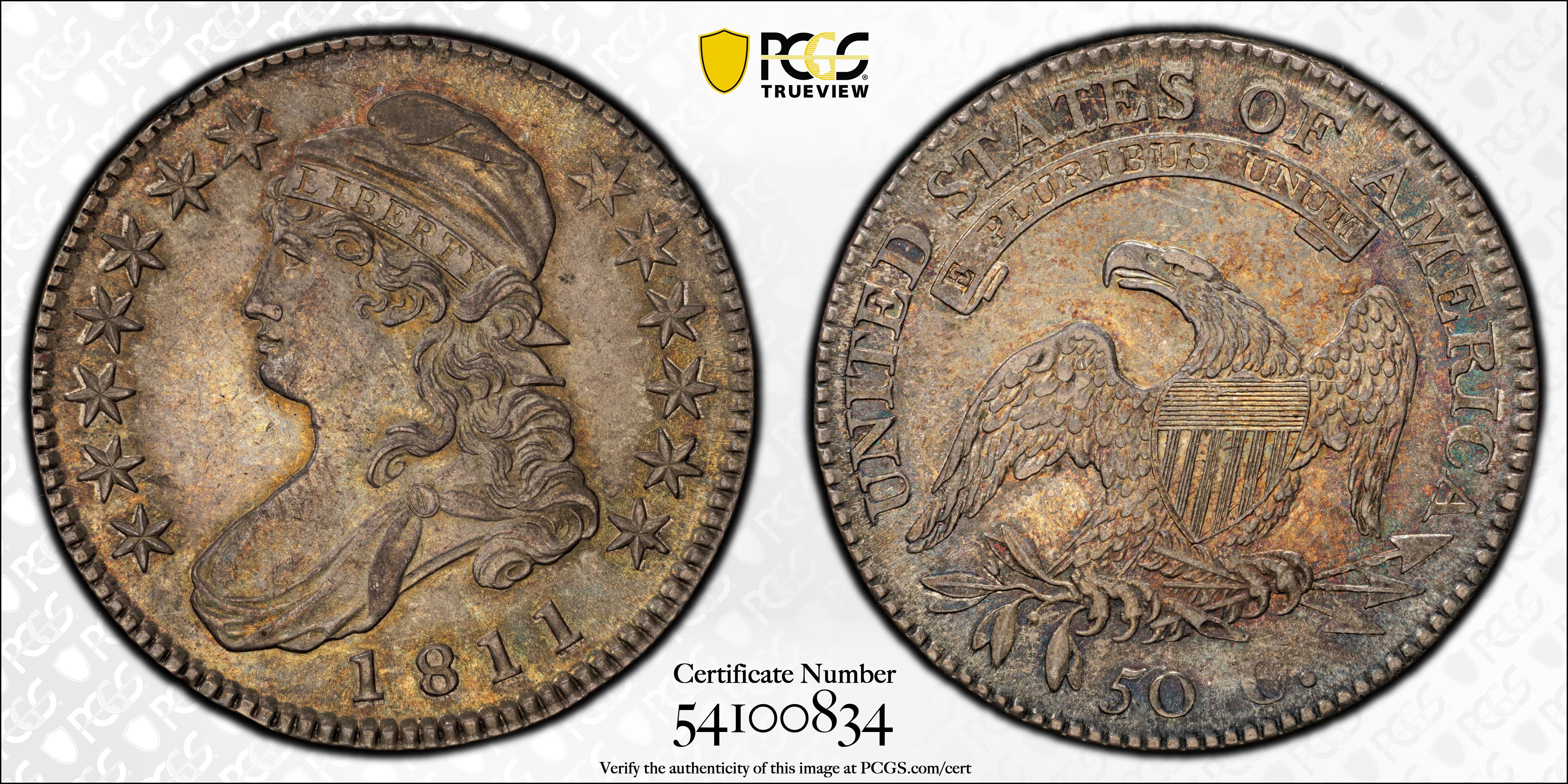 1811 50C Small 8 MS64 认证号54100834, PCGS号6097