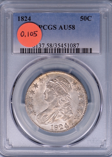 1824 50C AU58 认证号35451087, PCGS号6137