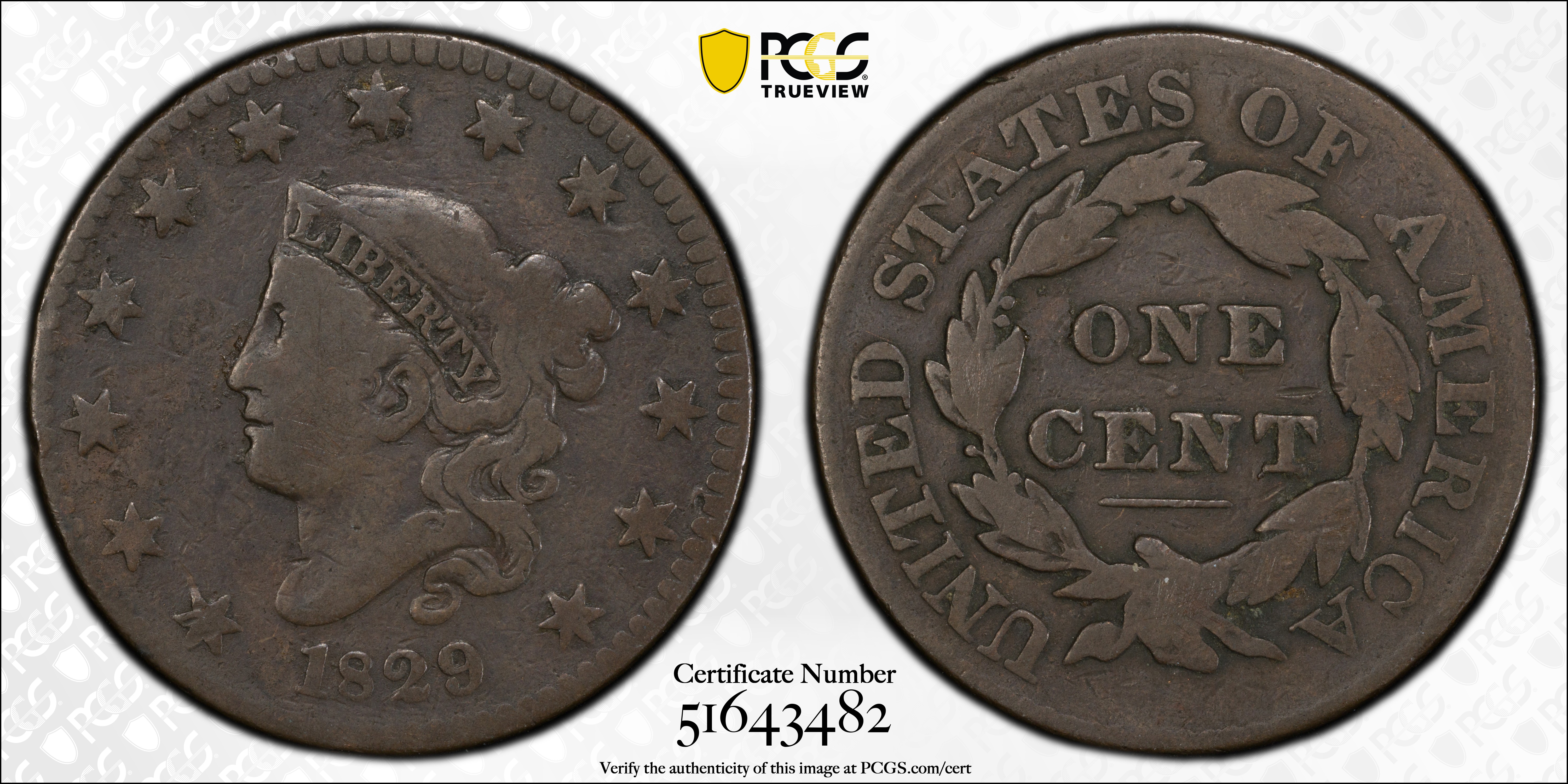 1829 1C N-6, BN VG10BN 认证号51643482, PCGS号36919