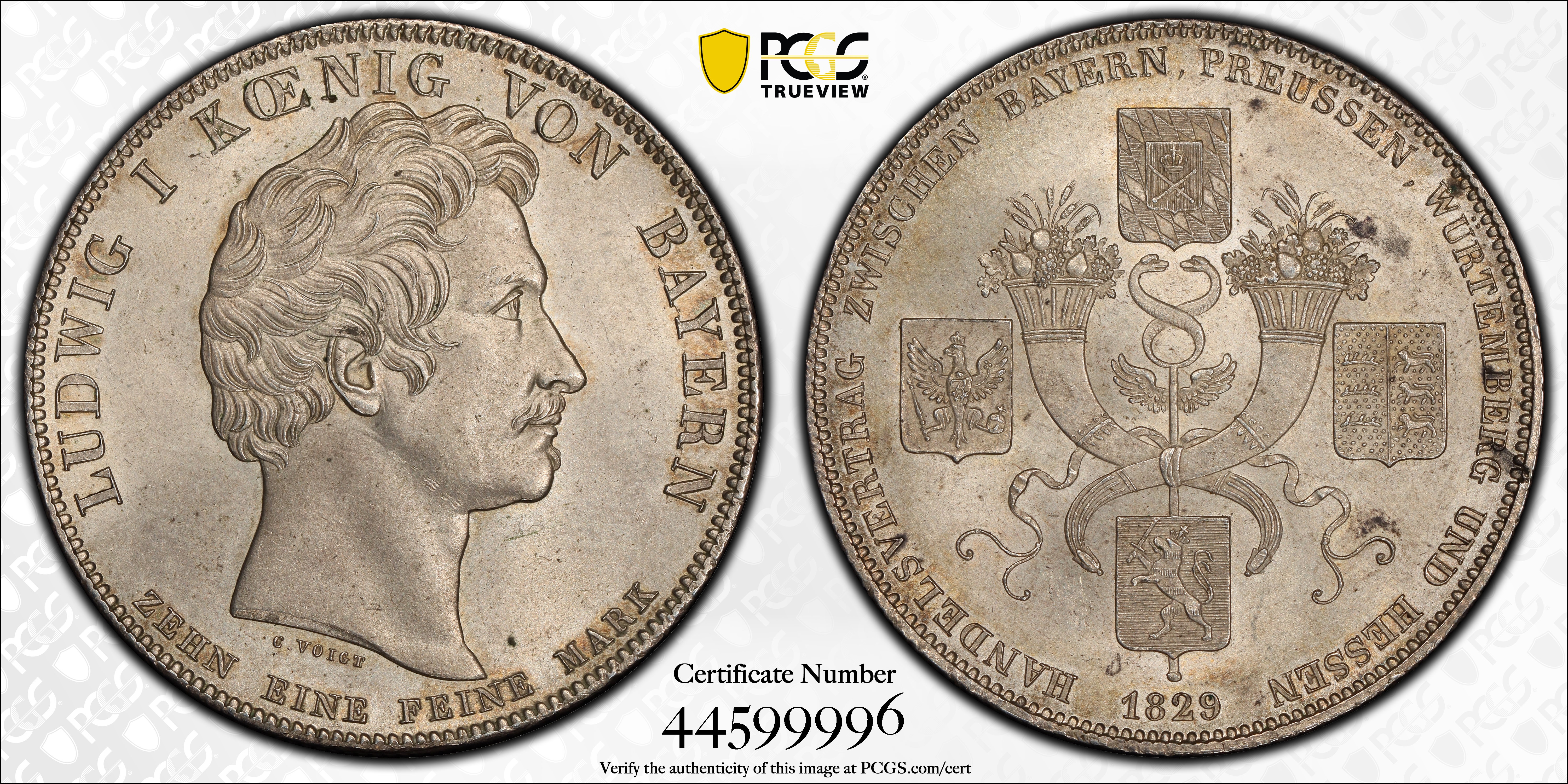 1829 Thaler KM-738 Commercial Treaty MS65 认证号44599996, PCGS号190979