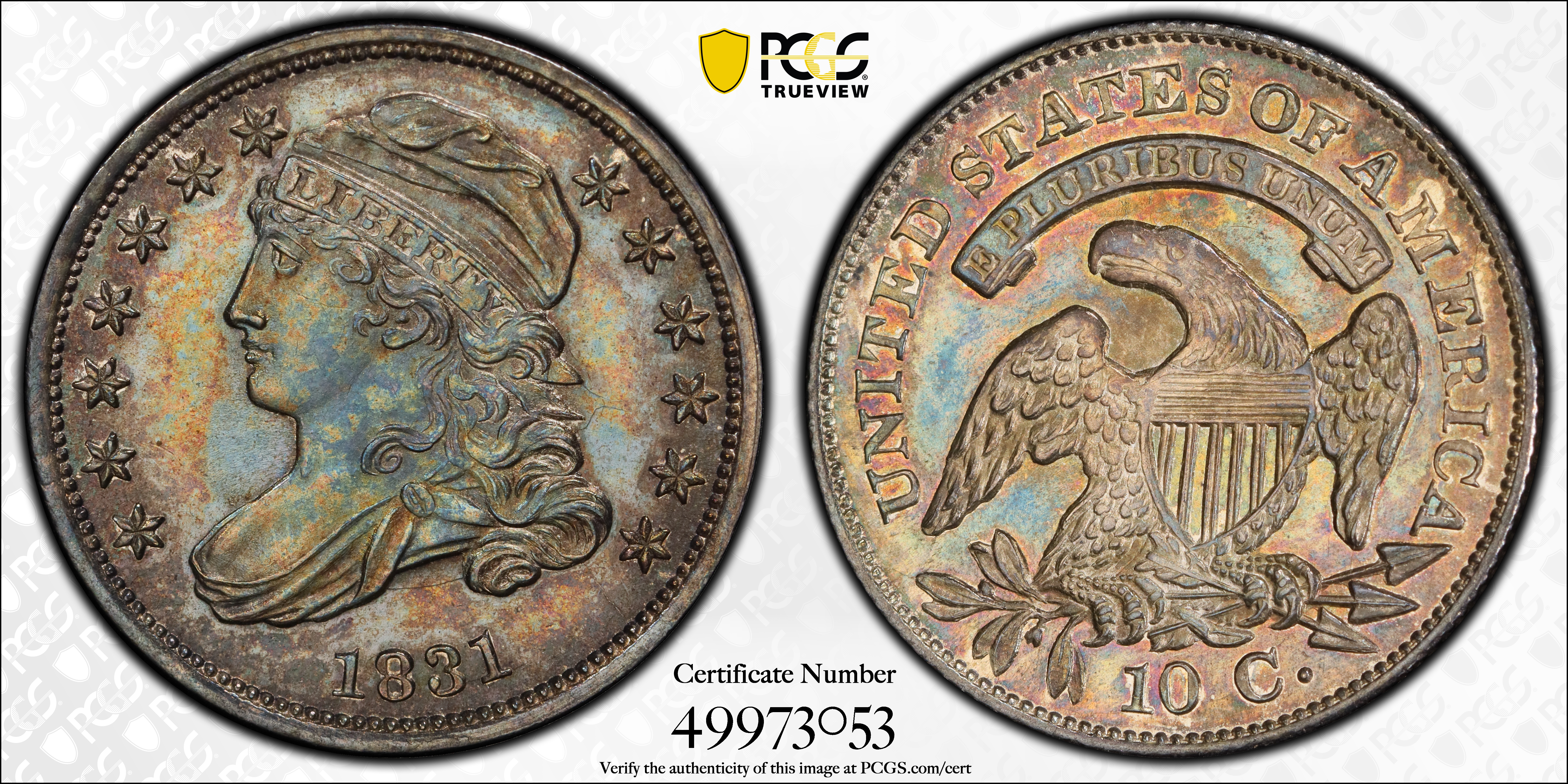 1831 10C JR-3 MS64 认证号49973053, PCGS号38851
