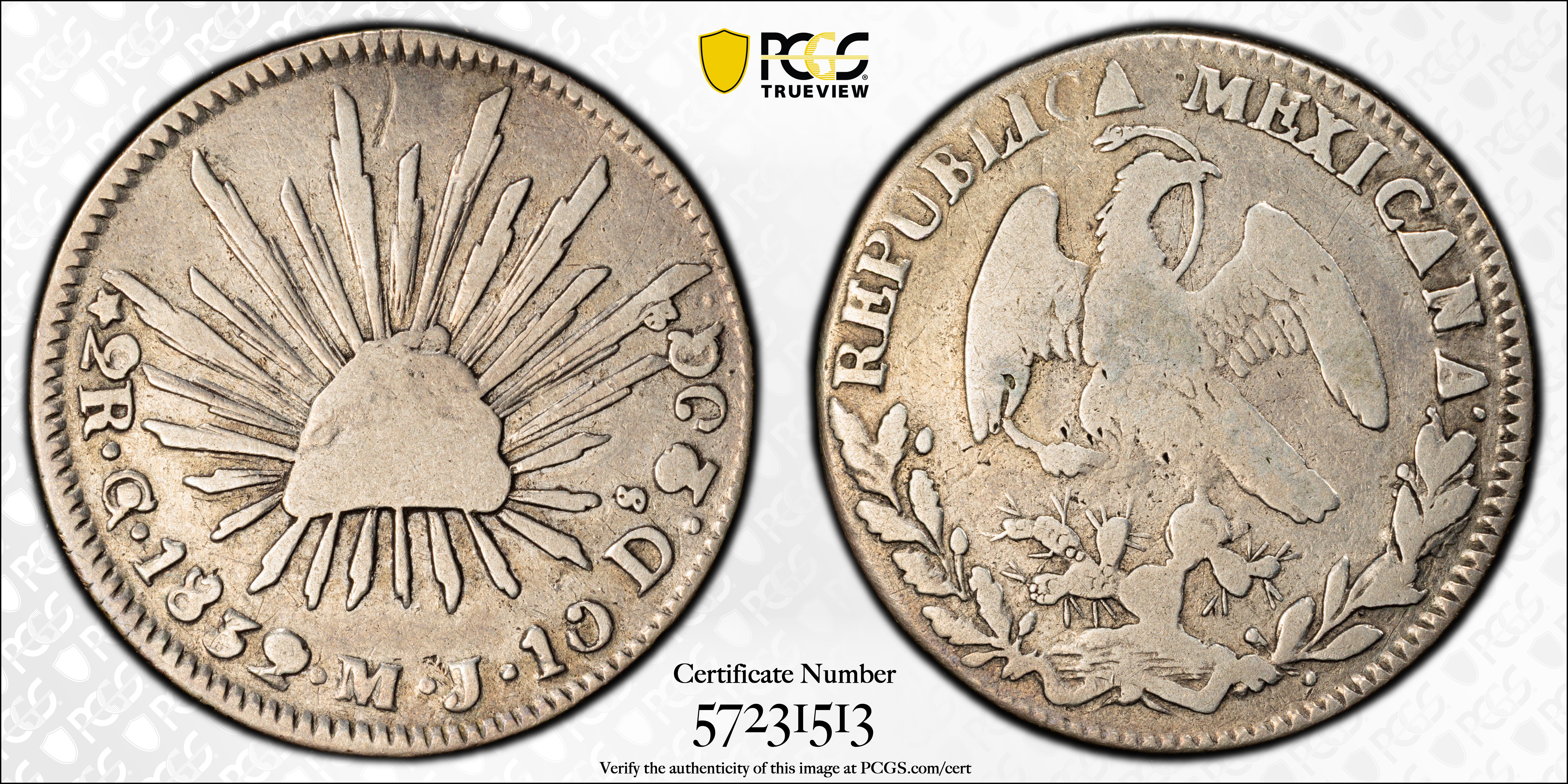 1832-Go MJ 2 R N1 认证号57231513, PCGS号271202