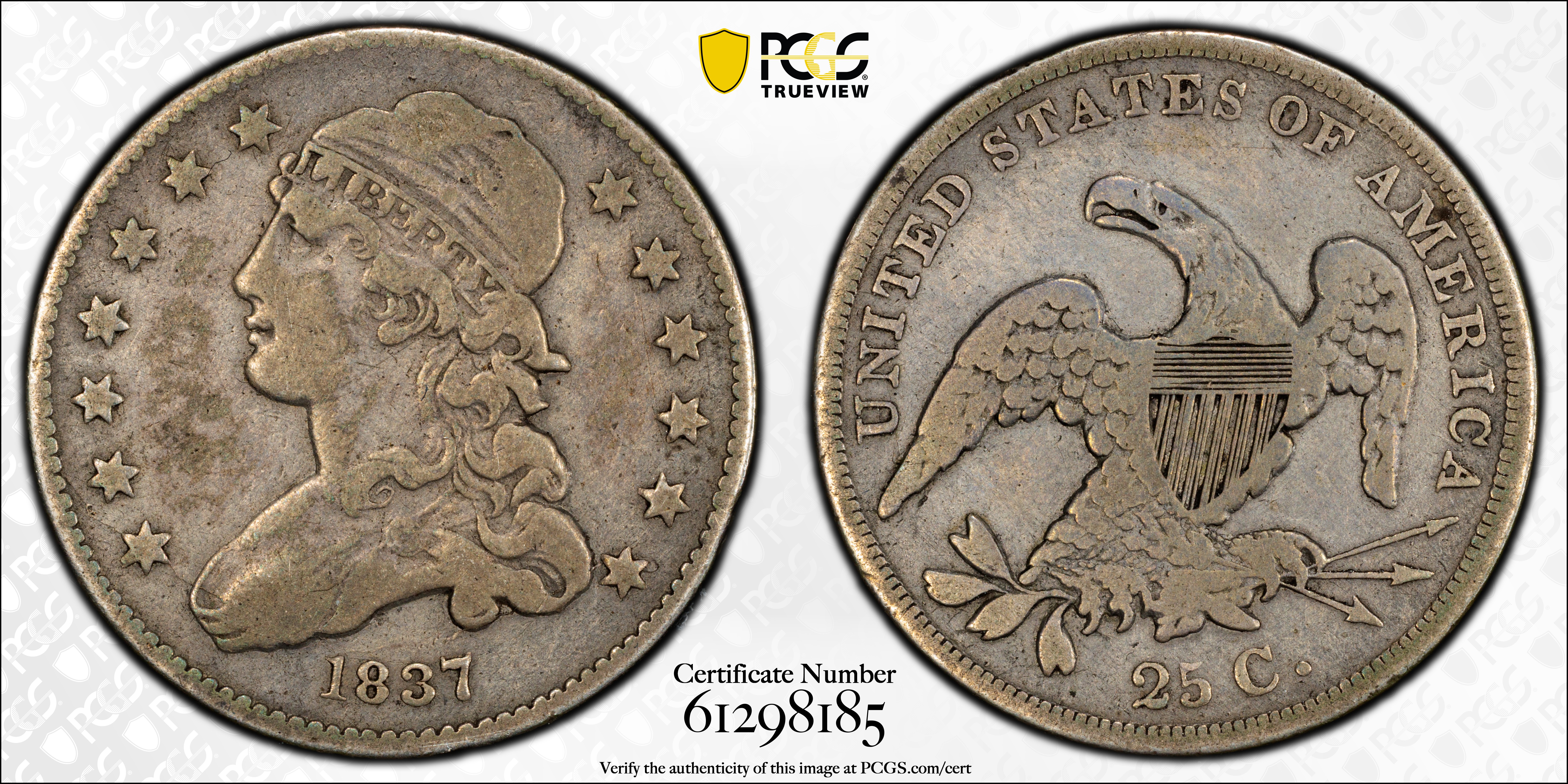 1837 25C B-6 F12 认证号61298185, PCGS号403808