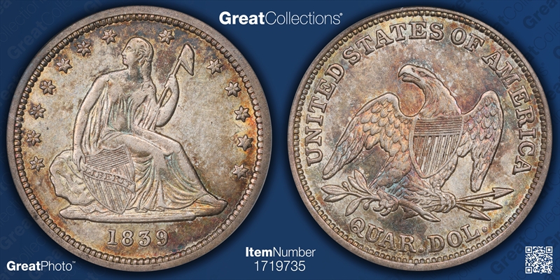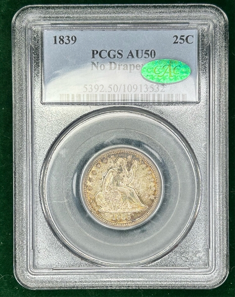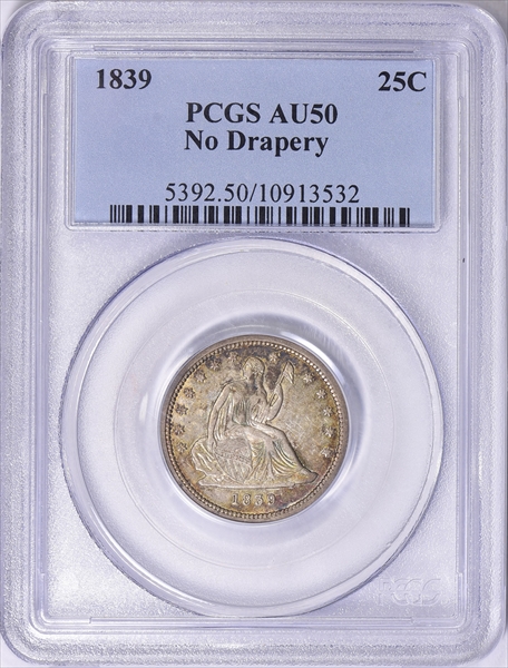 1839 25C No Drapery AU50 认证号10913532, PCGS号5392
