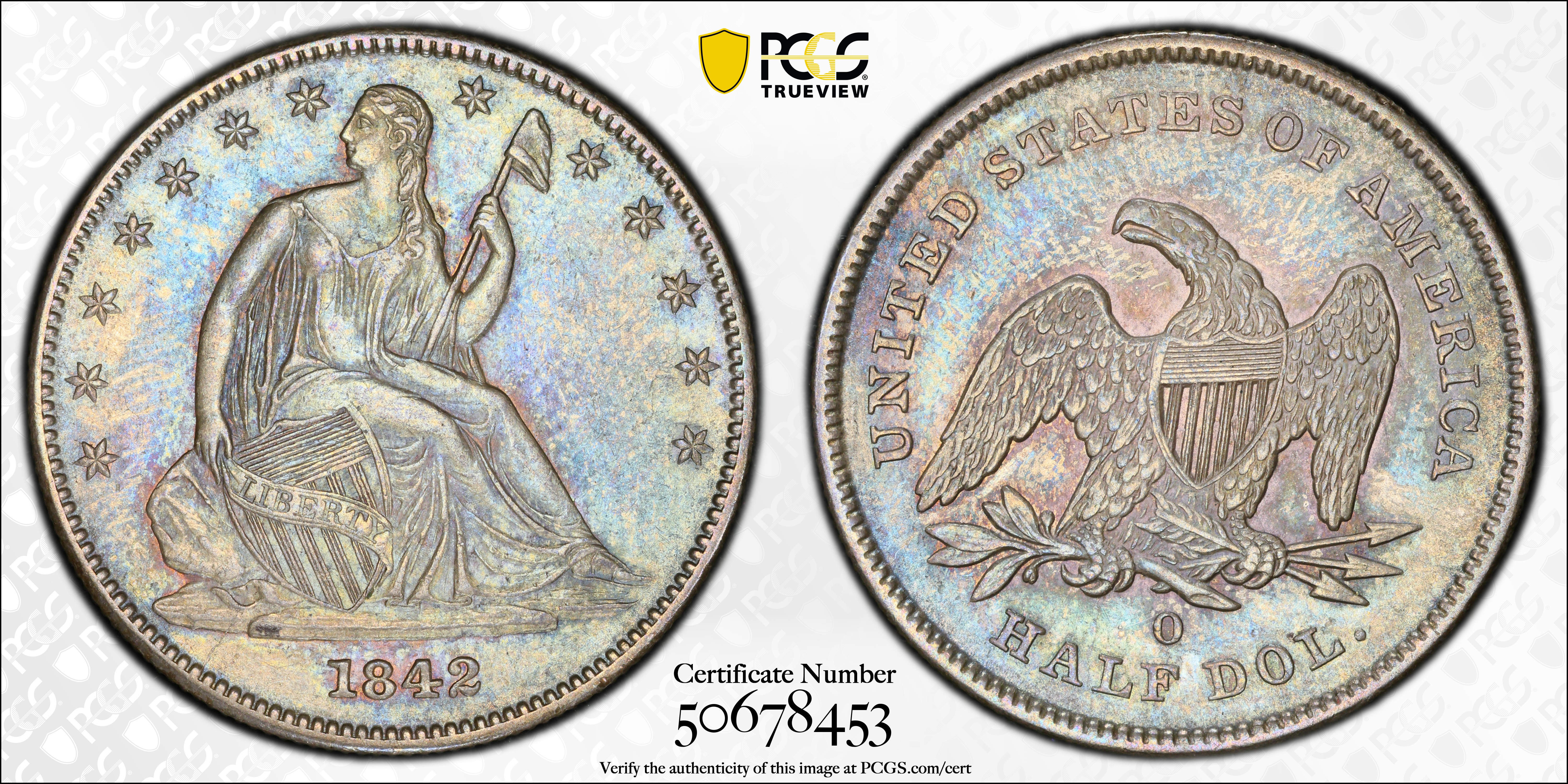 1842-O 50C Small Date, Rev. of 1839 AU58 认证号50678453, PCGS号6238