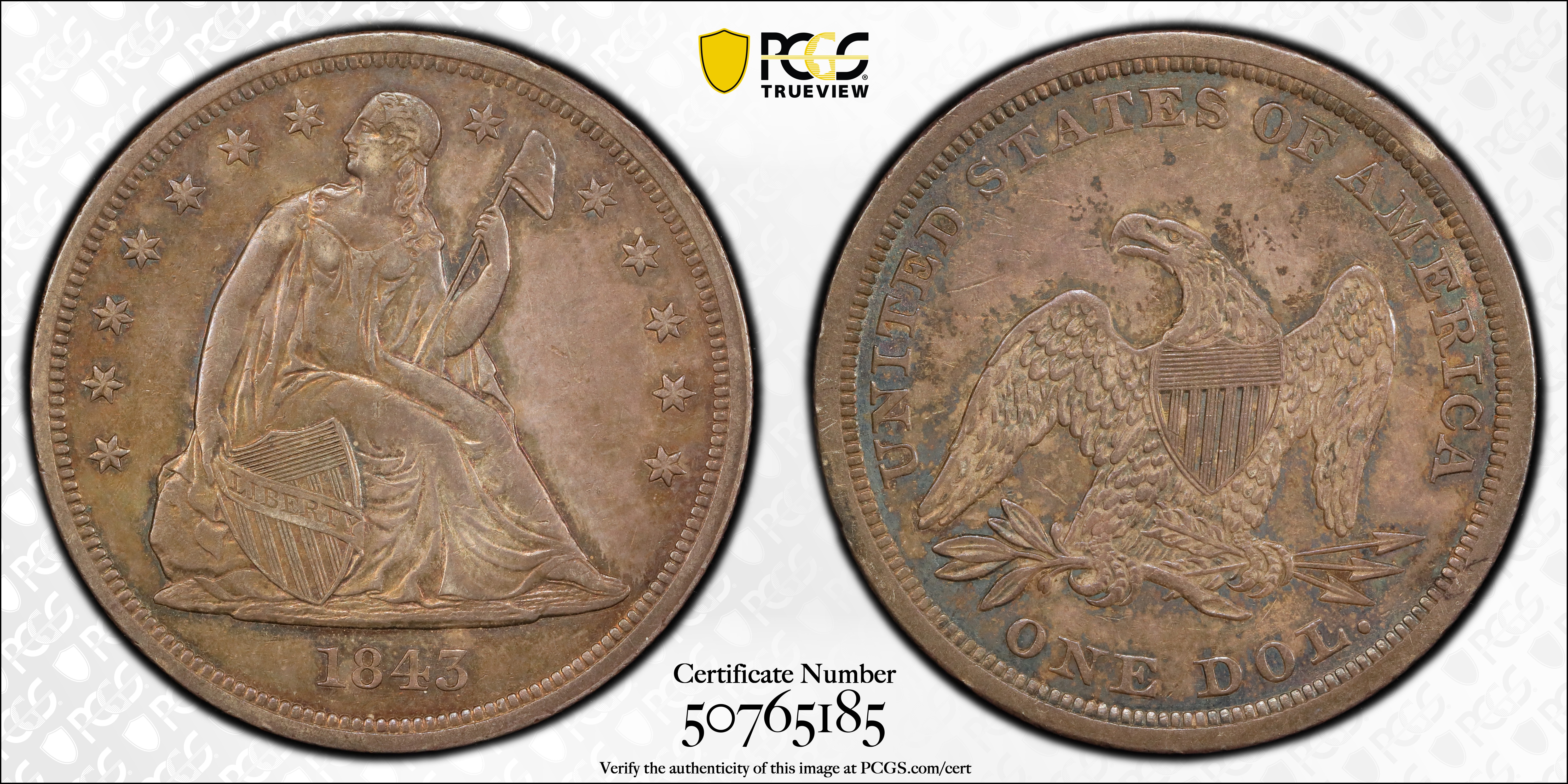 1843 $1 XF45 认证号50765185, PCGS号6929