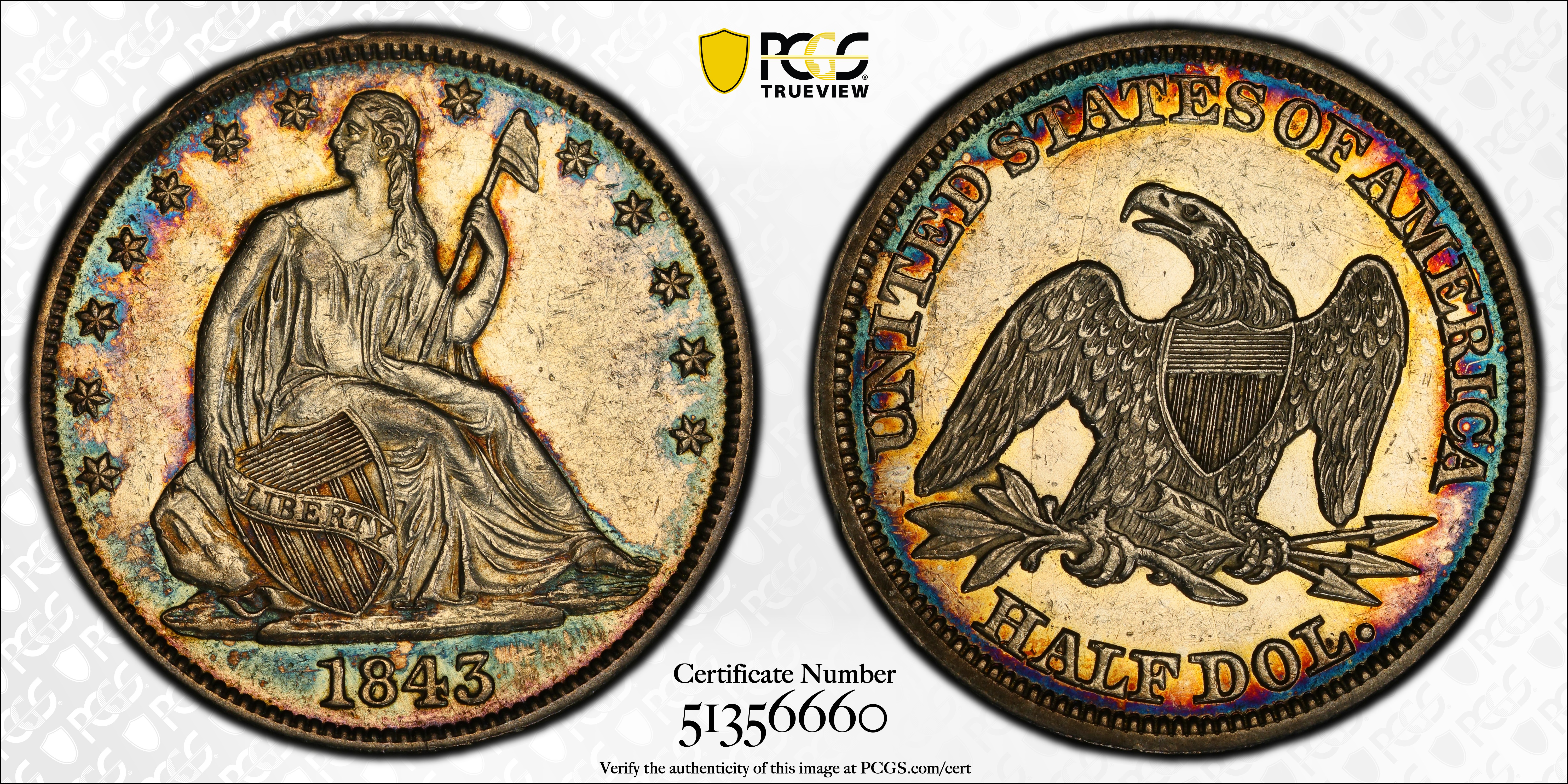 1843 50C AU53 认证号51356660, PCGS号6243