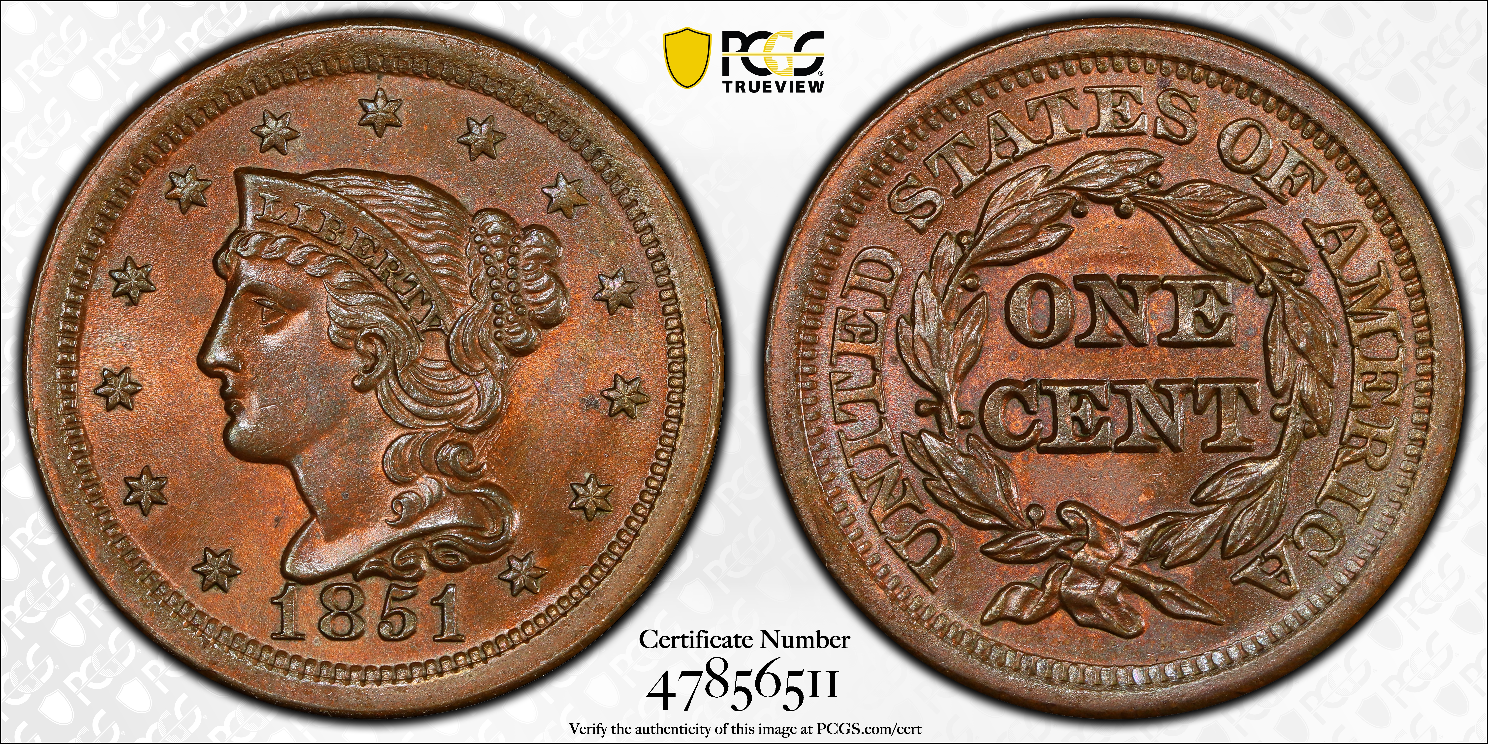 1851 1C, BN MS64BN 认证号47856511, PCGS号1892