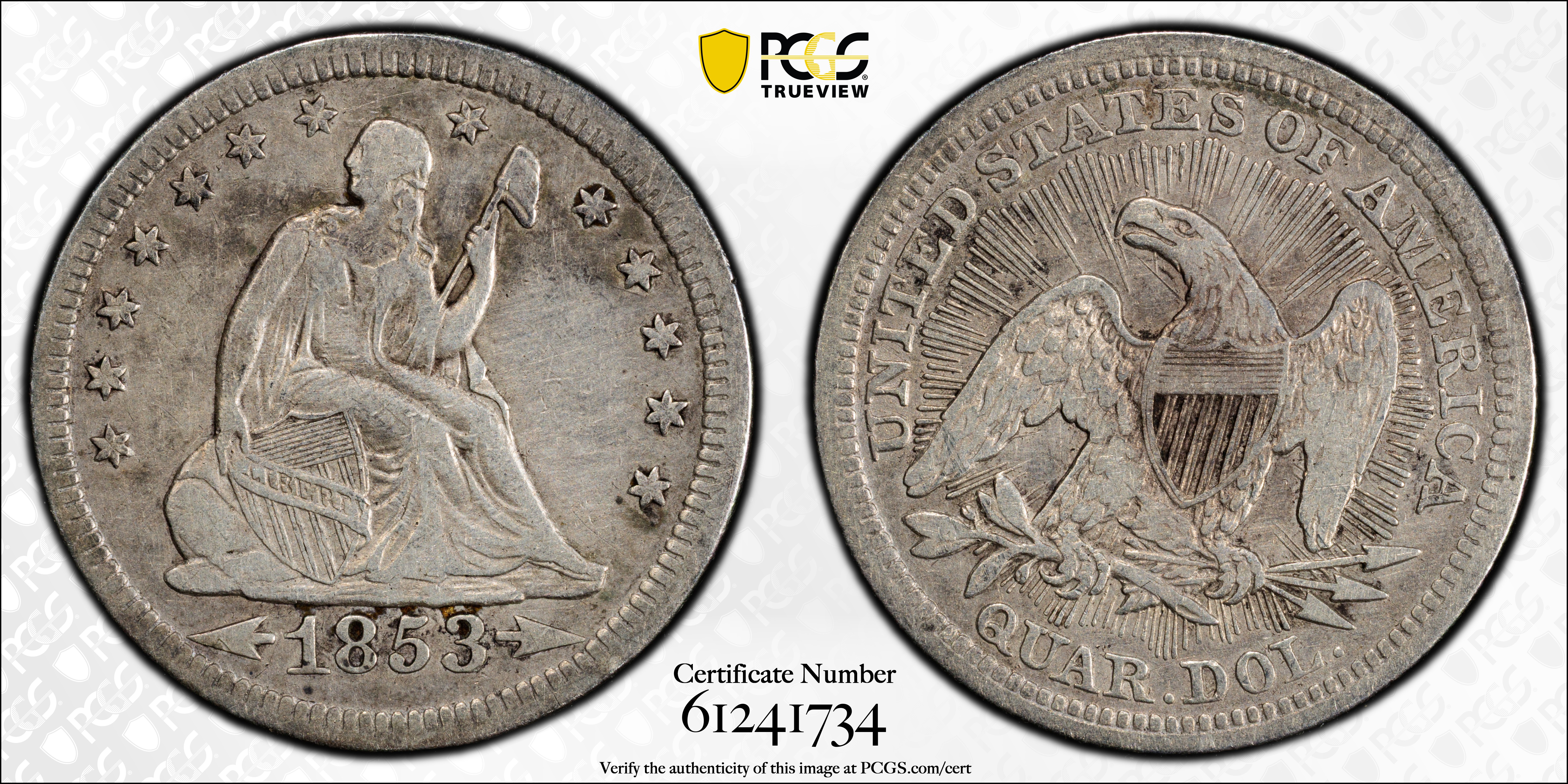 1853 25C Arrows and Rays N1 认证号61241734, PCGS号5426