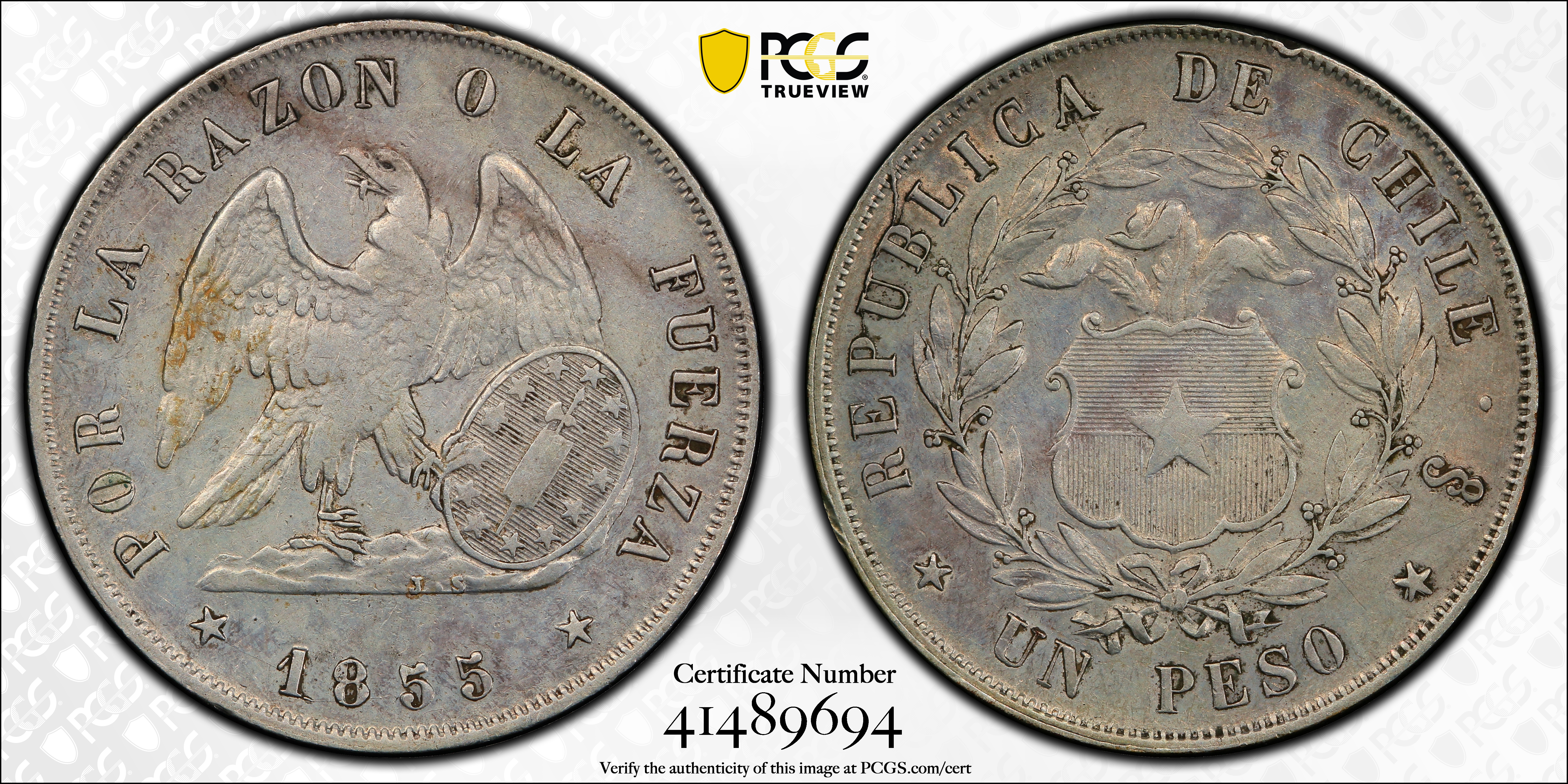 1855-So Peso XF40 认证号41489694, PCGS号172867
