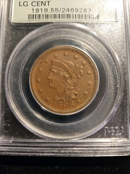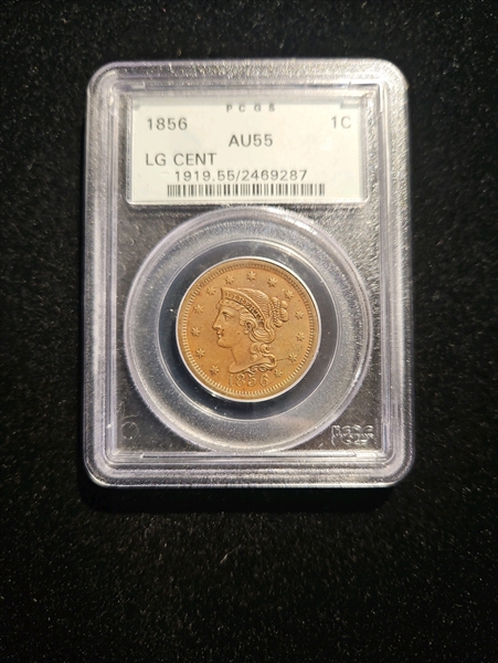 1856 1C Upright 5, BN AU55BN 认证号02469287, PCGS号1919