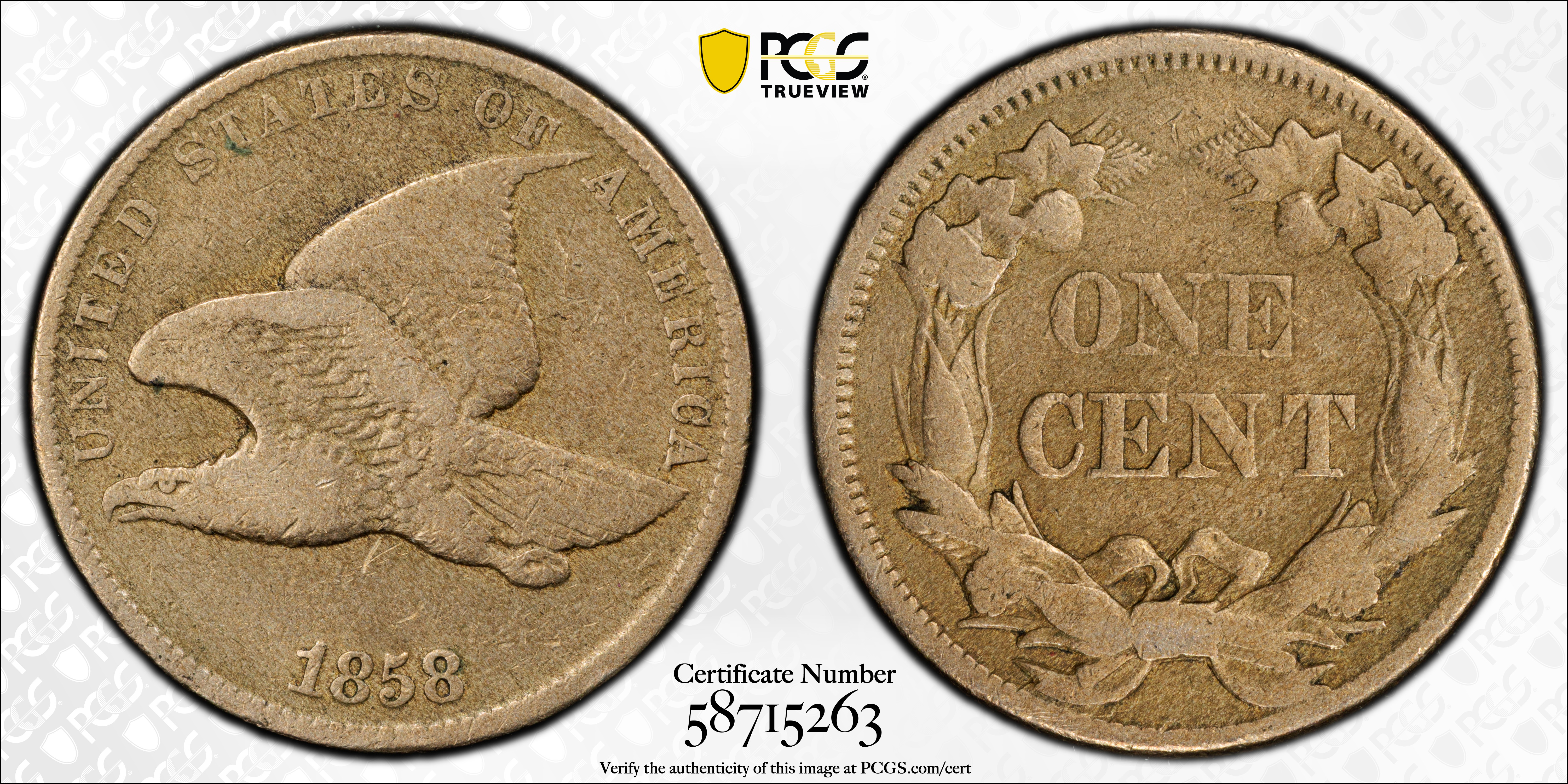 1858 1C Small Letters N1 认证号58715263, PCGS号2020