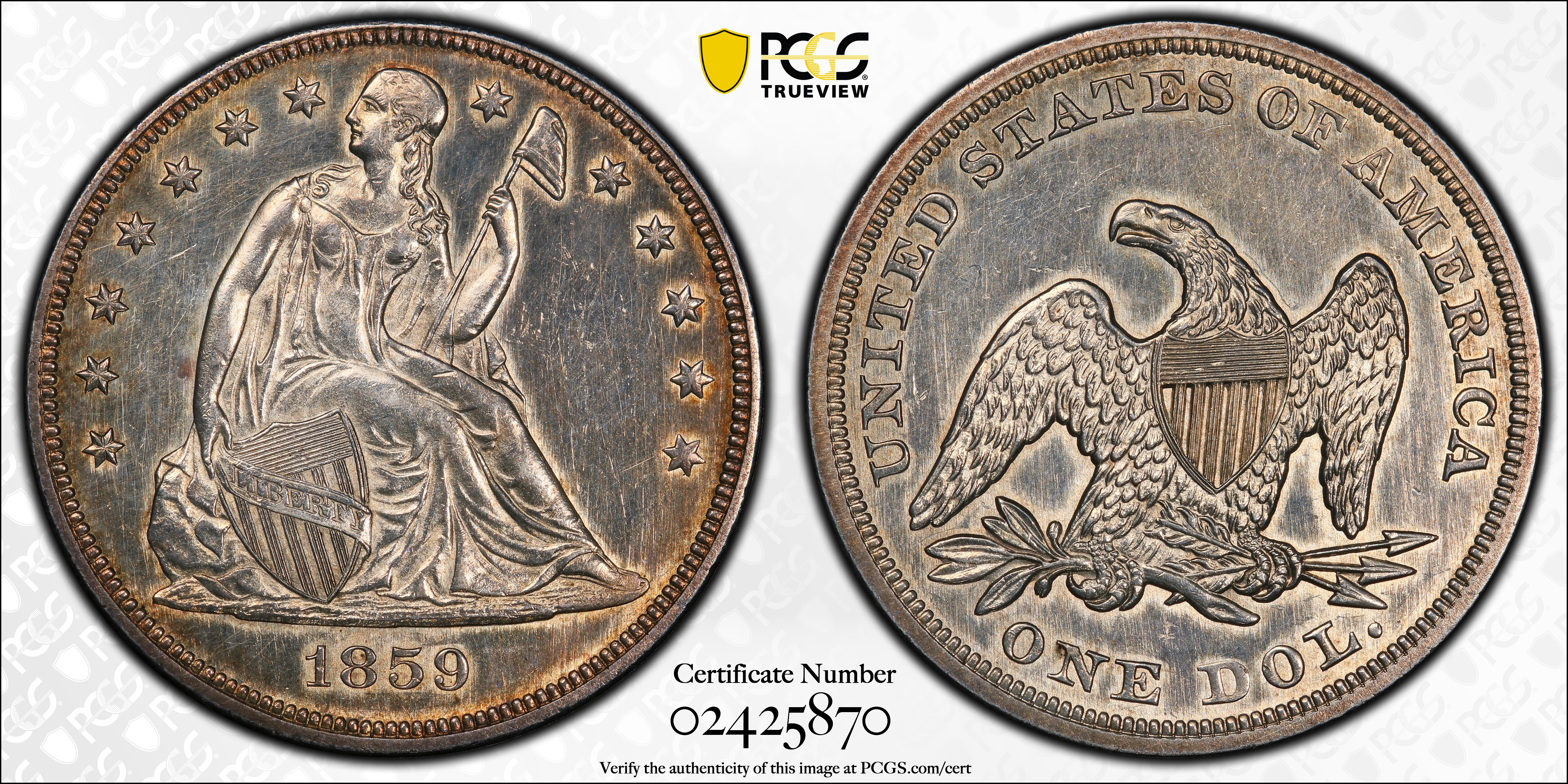 1859 $1 AU58 认证号02425870, PCGS号6946