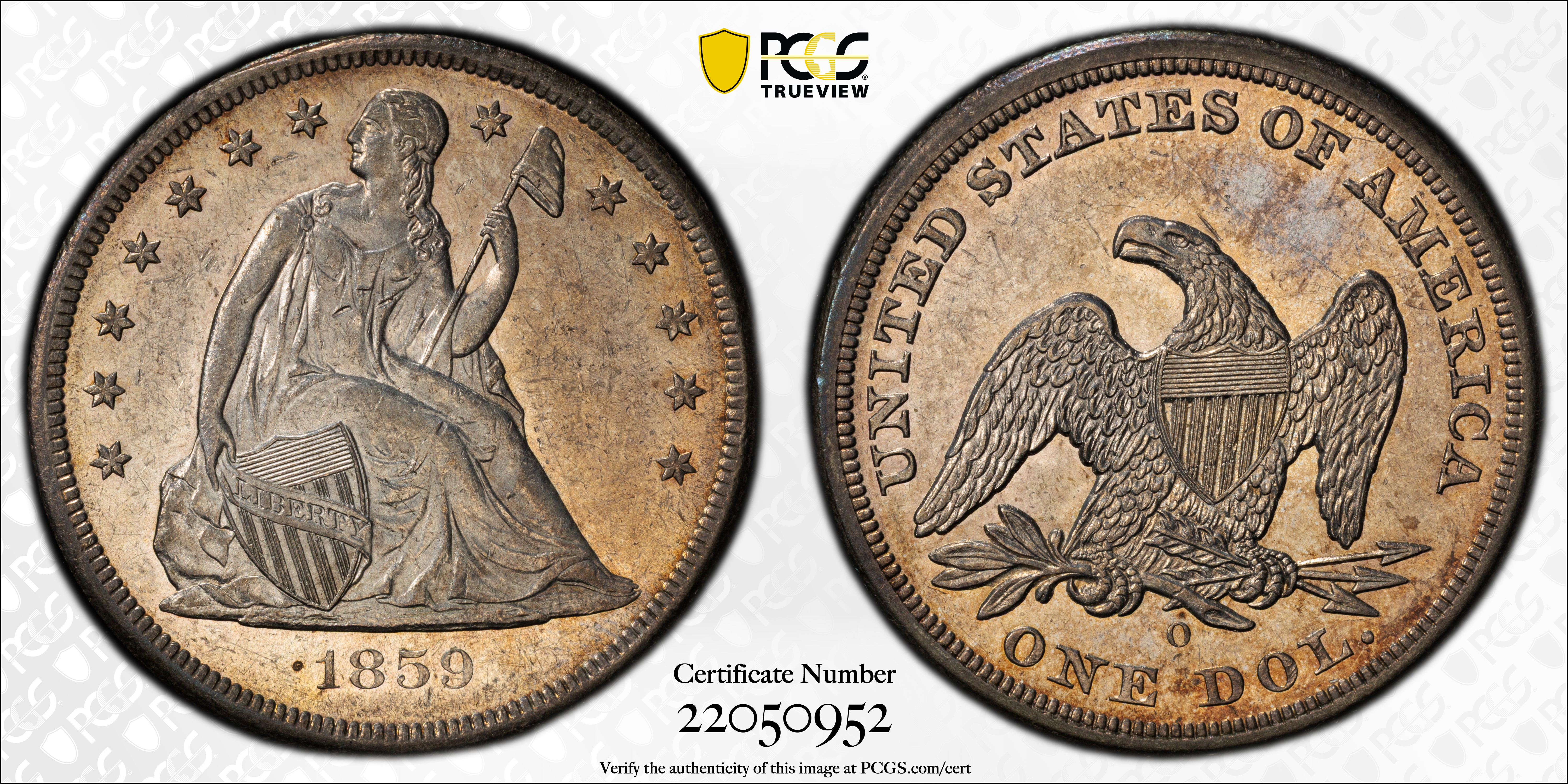 1859-O $1 AU58 认证号22050952, PCGS号6947
