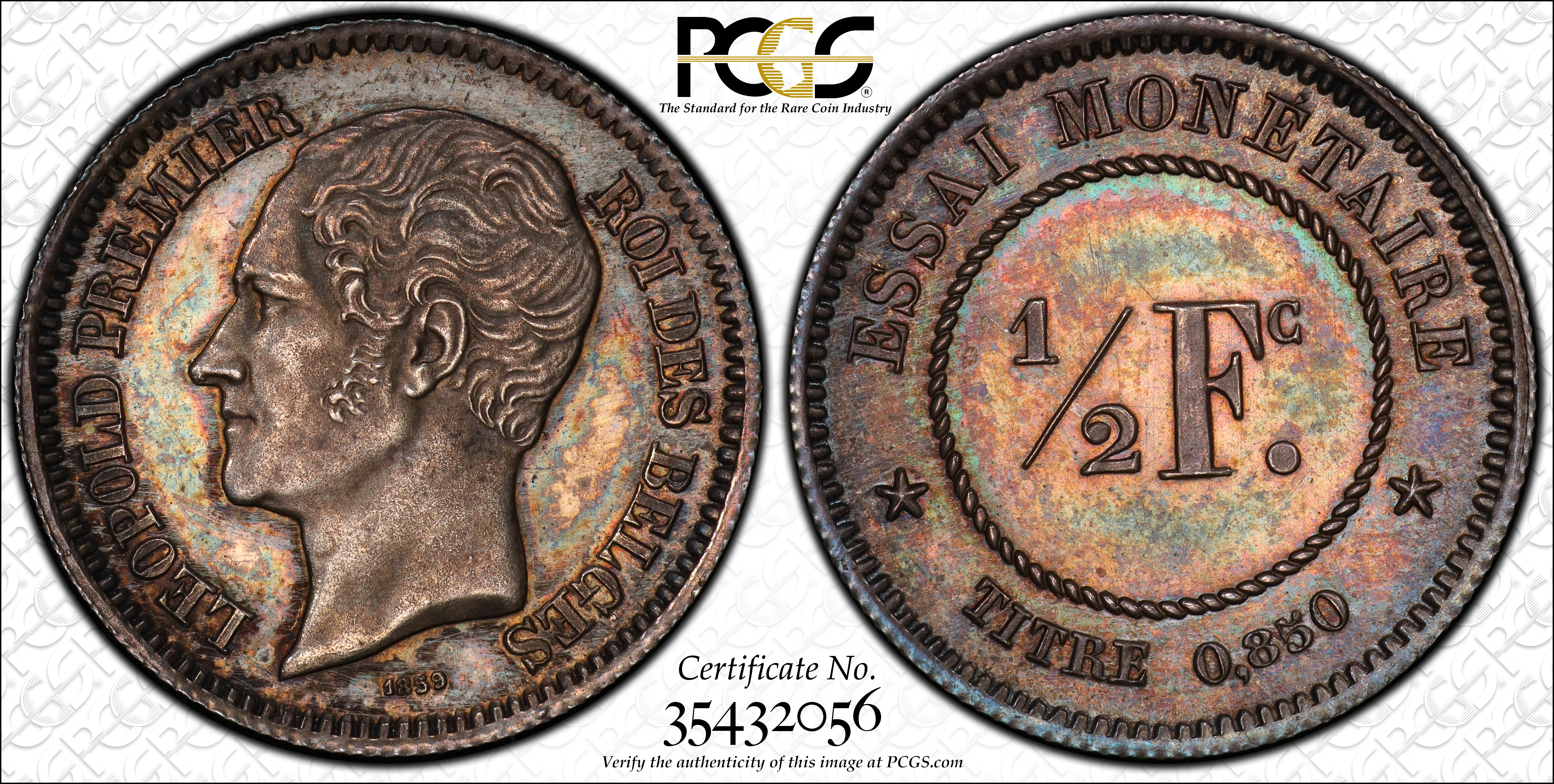1859 P1/2 Fr KM-Pn54 Essai Ag SP63 认证号35432056, PCGS号568362