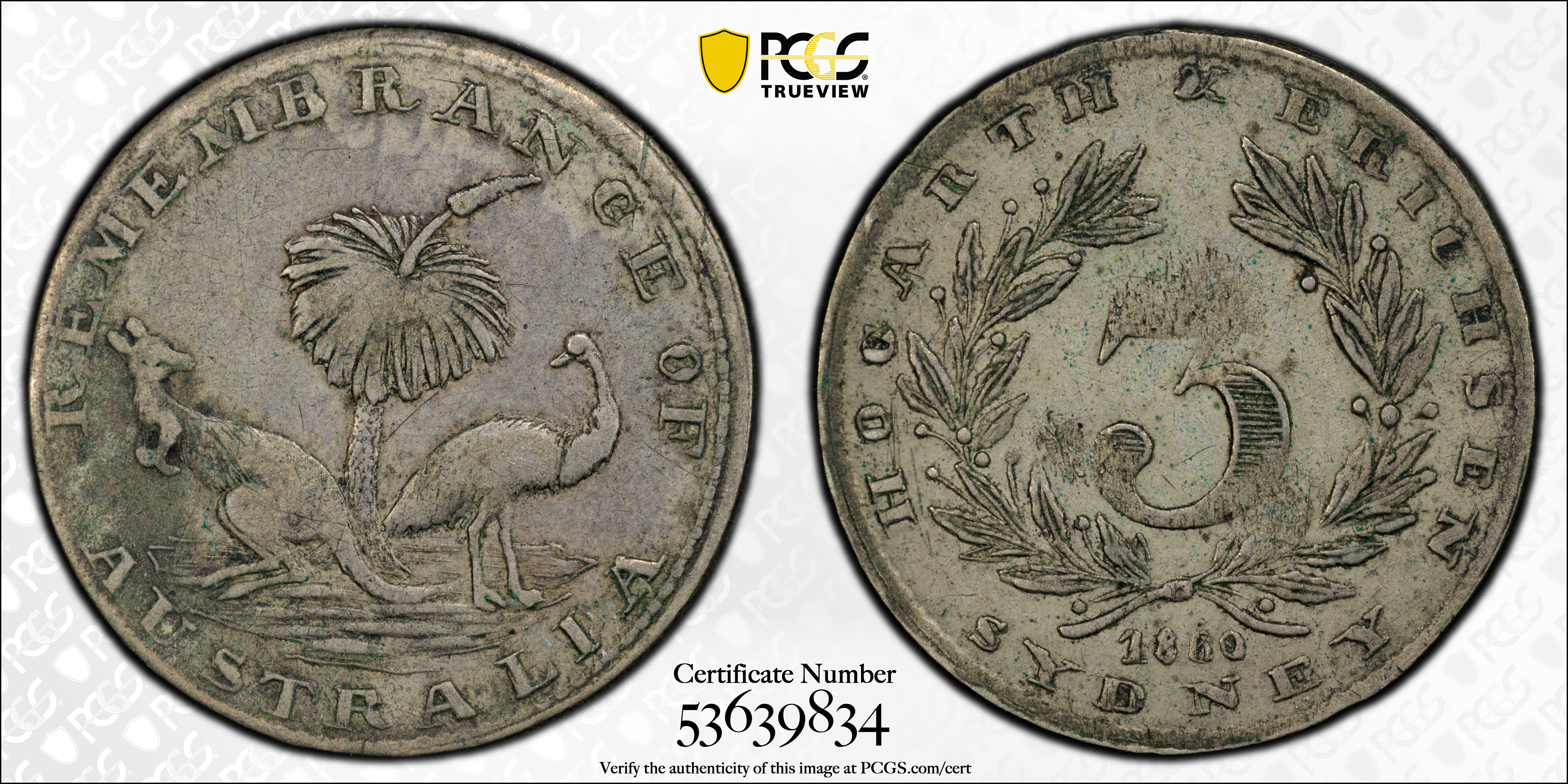 1860 3D KM-Tn118 Sydney, NSW Hogarth, Erichsen & Co. AU50 认证号53639834, PCGS号353689