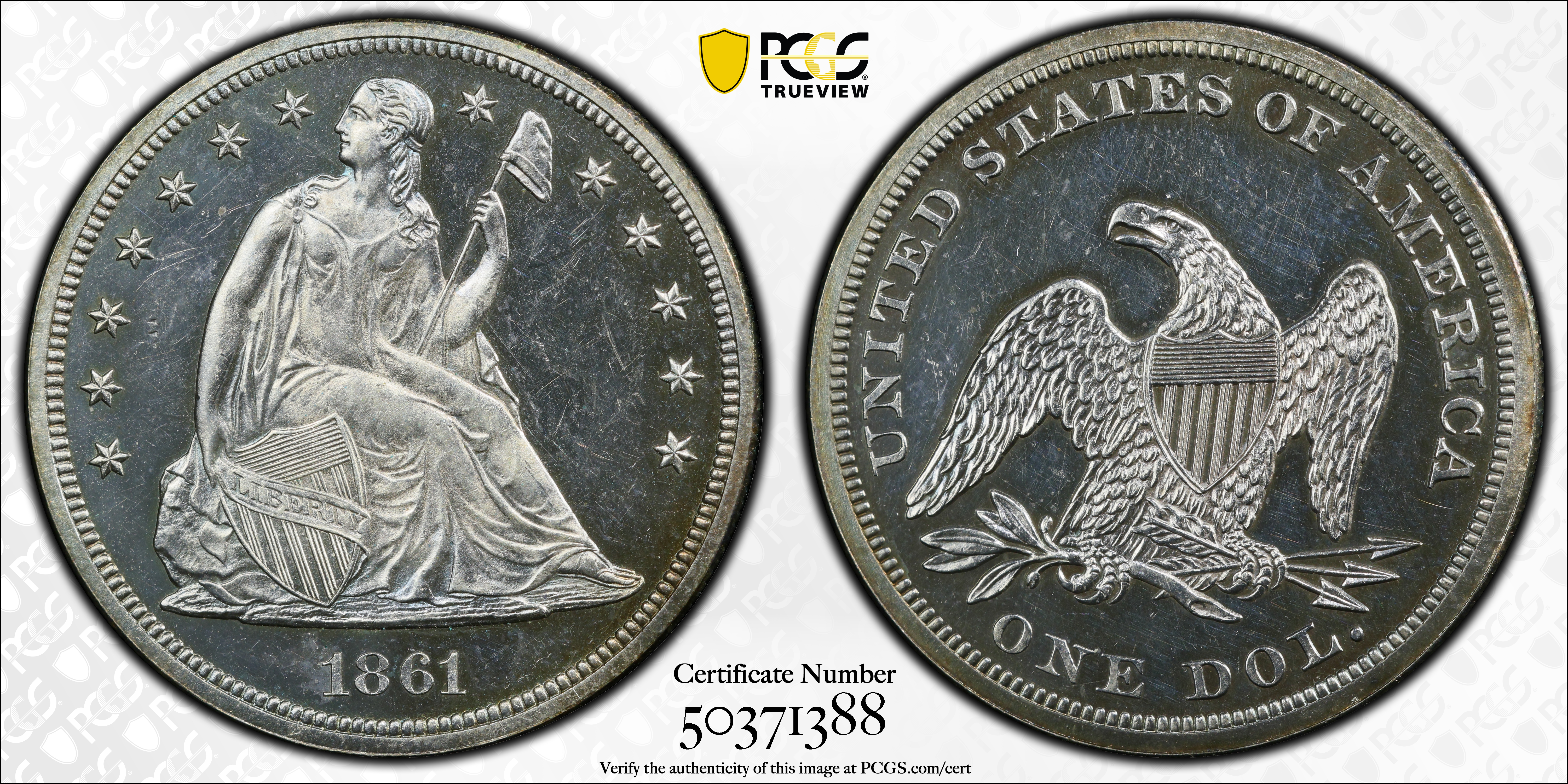 1861 $1 PR62 认证号50371388, PCGS号7004