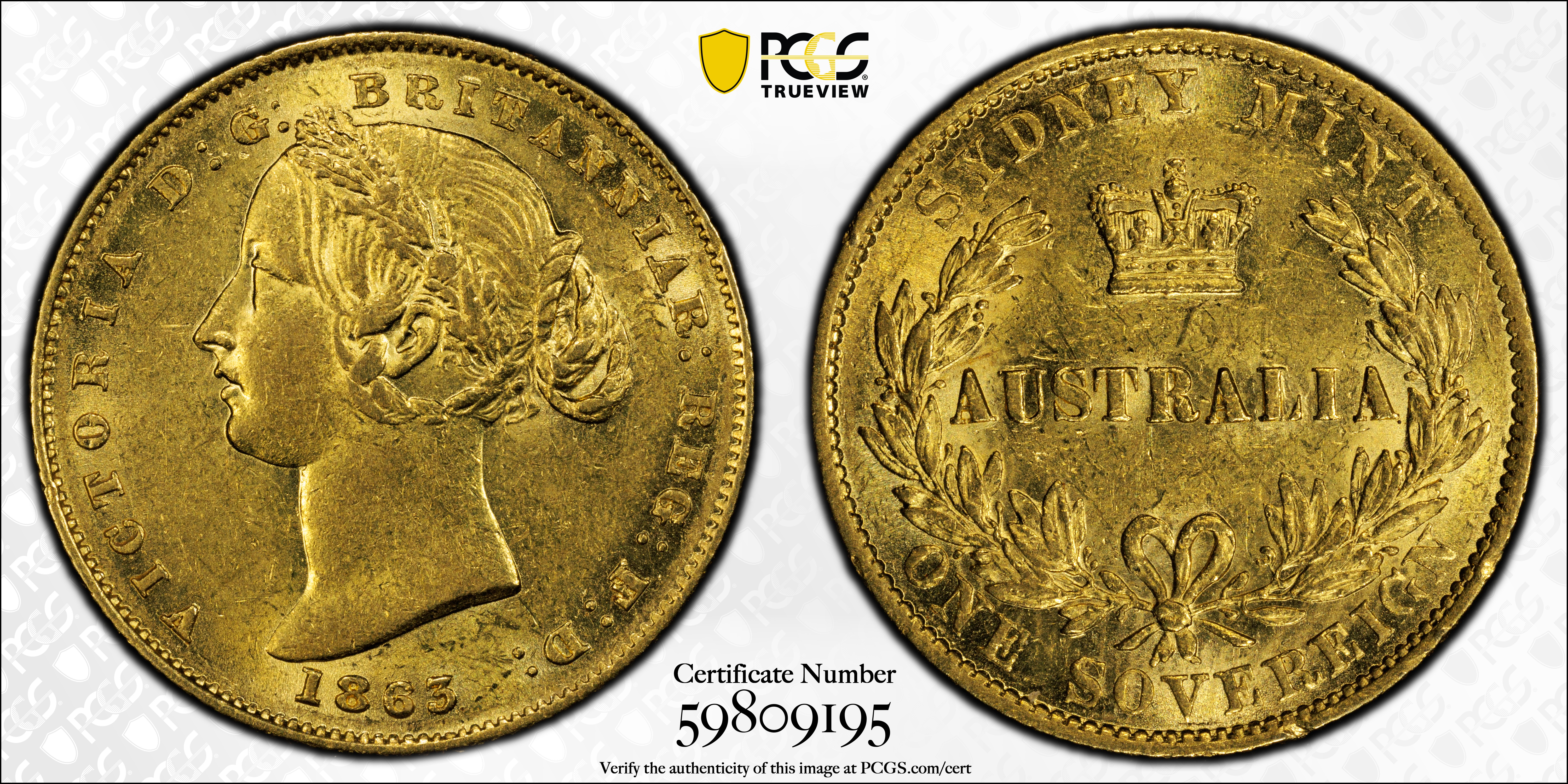 1863-SY Sov AU58 认证号59809195, PCGS号113177