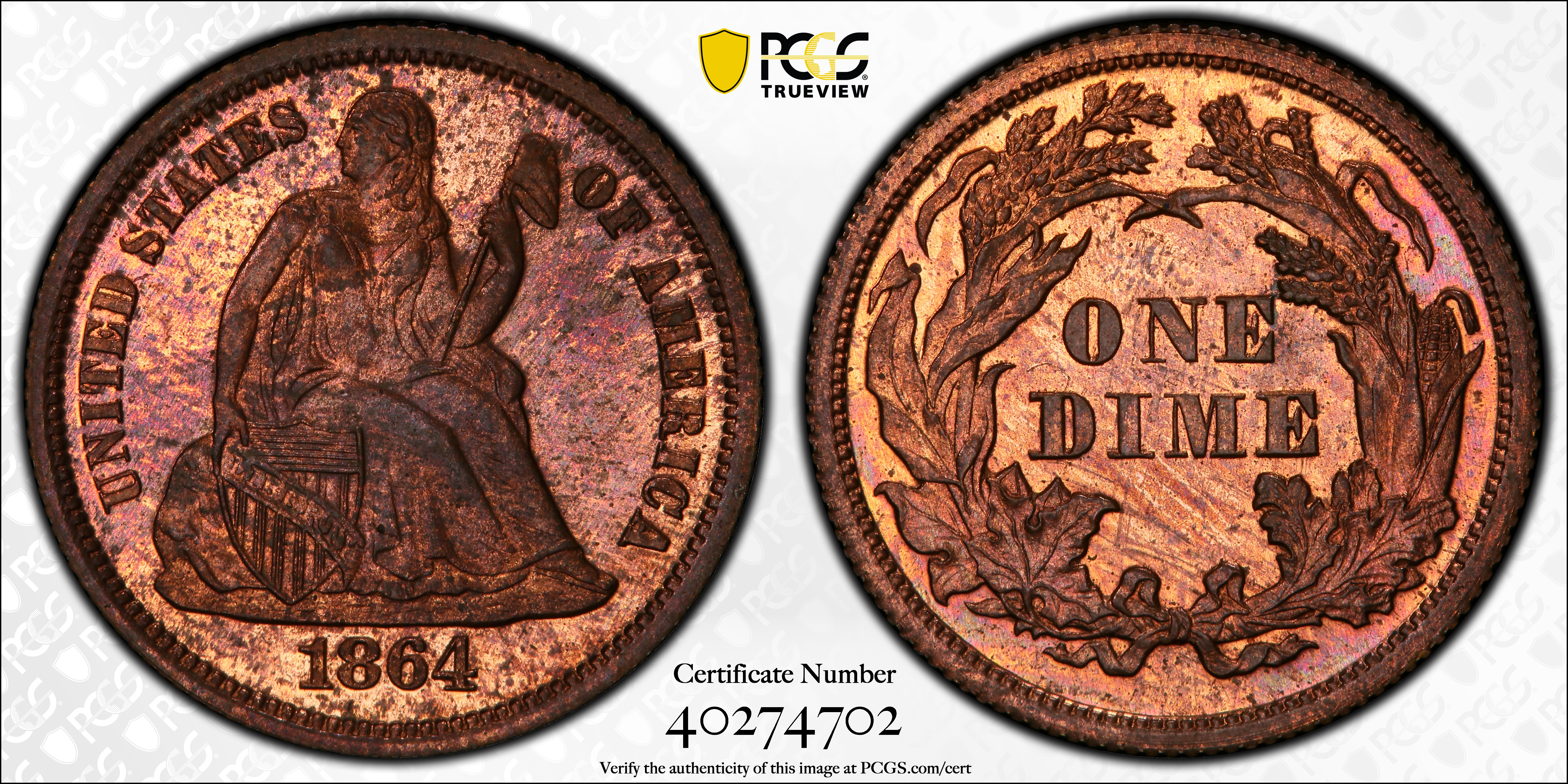 1864 10C J-381, RB PR65RB 认证号40274702, PCGS号70552