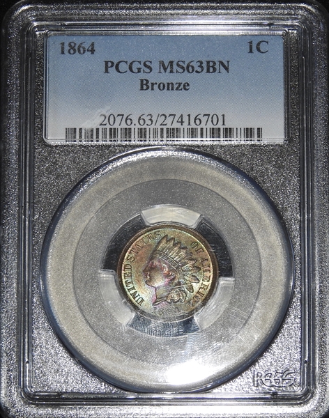 1864 1C Bronze, BN MS63BN 认证号27416701, PCGS号2076