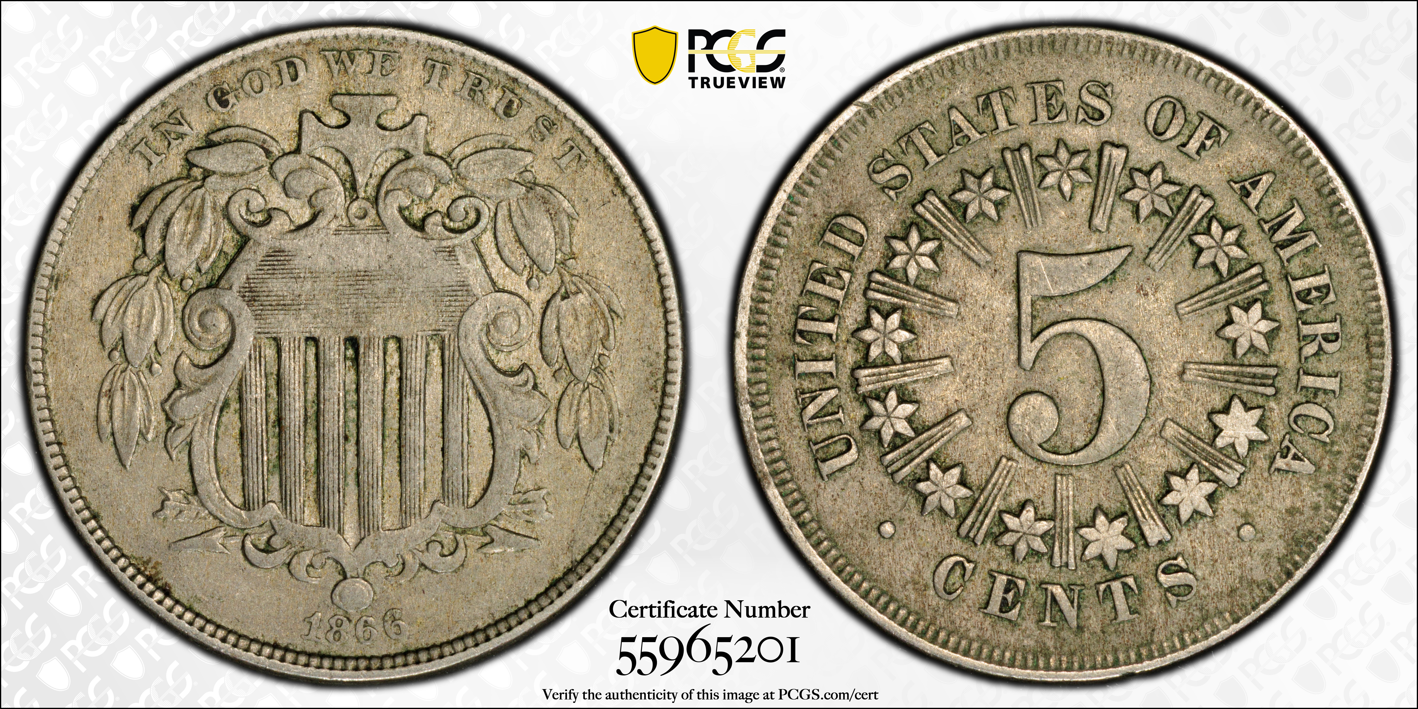 1866 5C VF35 认证号55965201, PCGS号3790