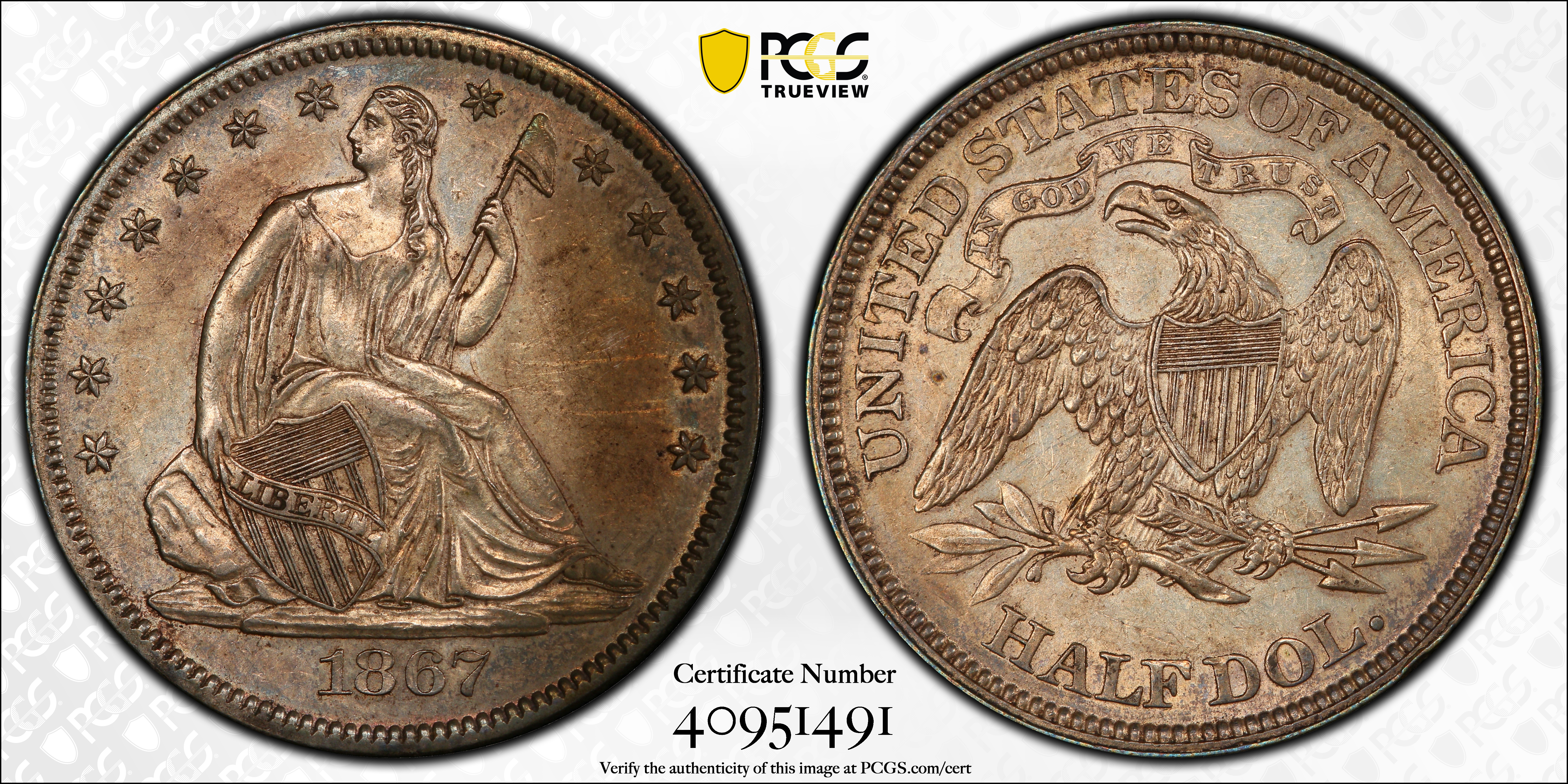 1867 50C AU55 认证号40951491, PCGS号6321