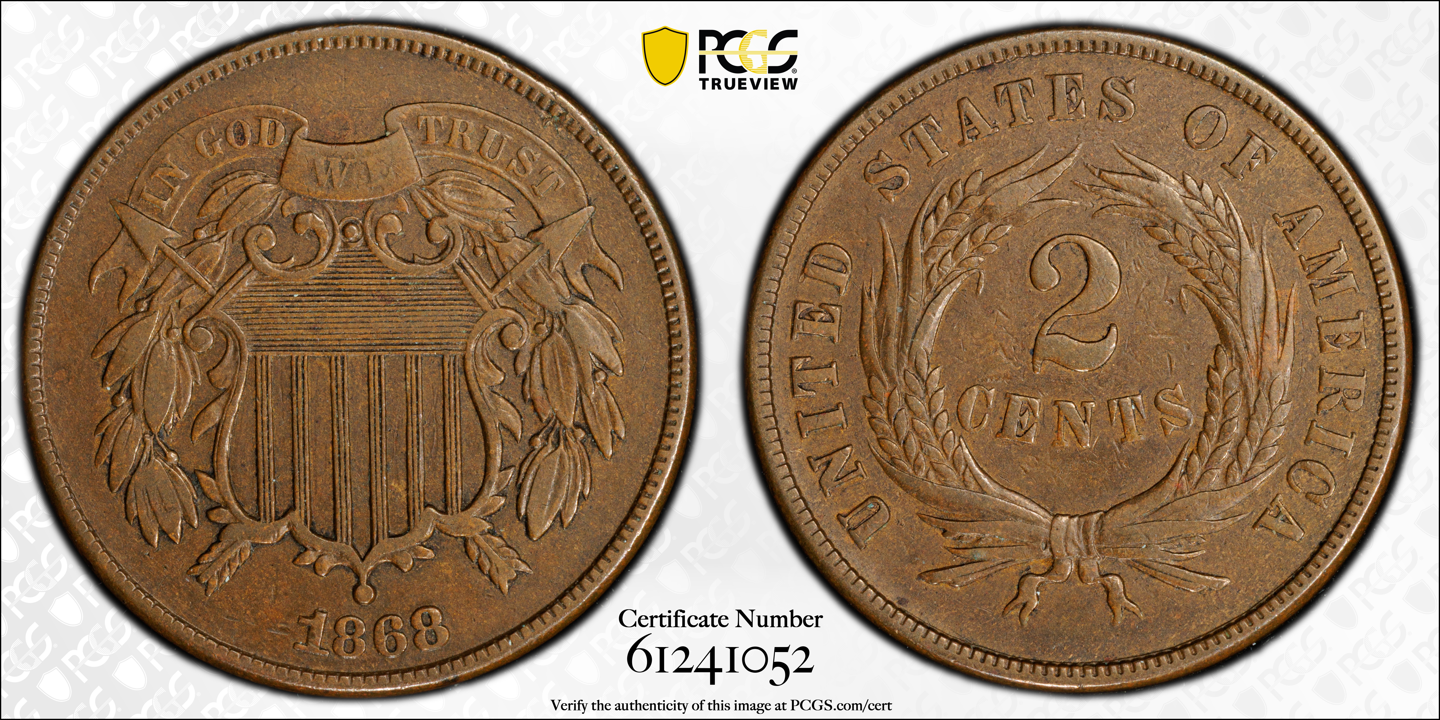 1868 2C, BN VF35BN 认证号61241052, PCGS号3597