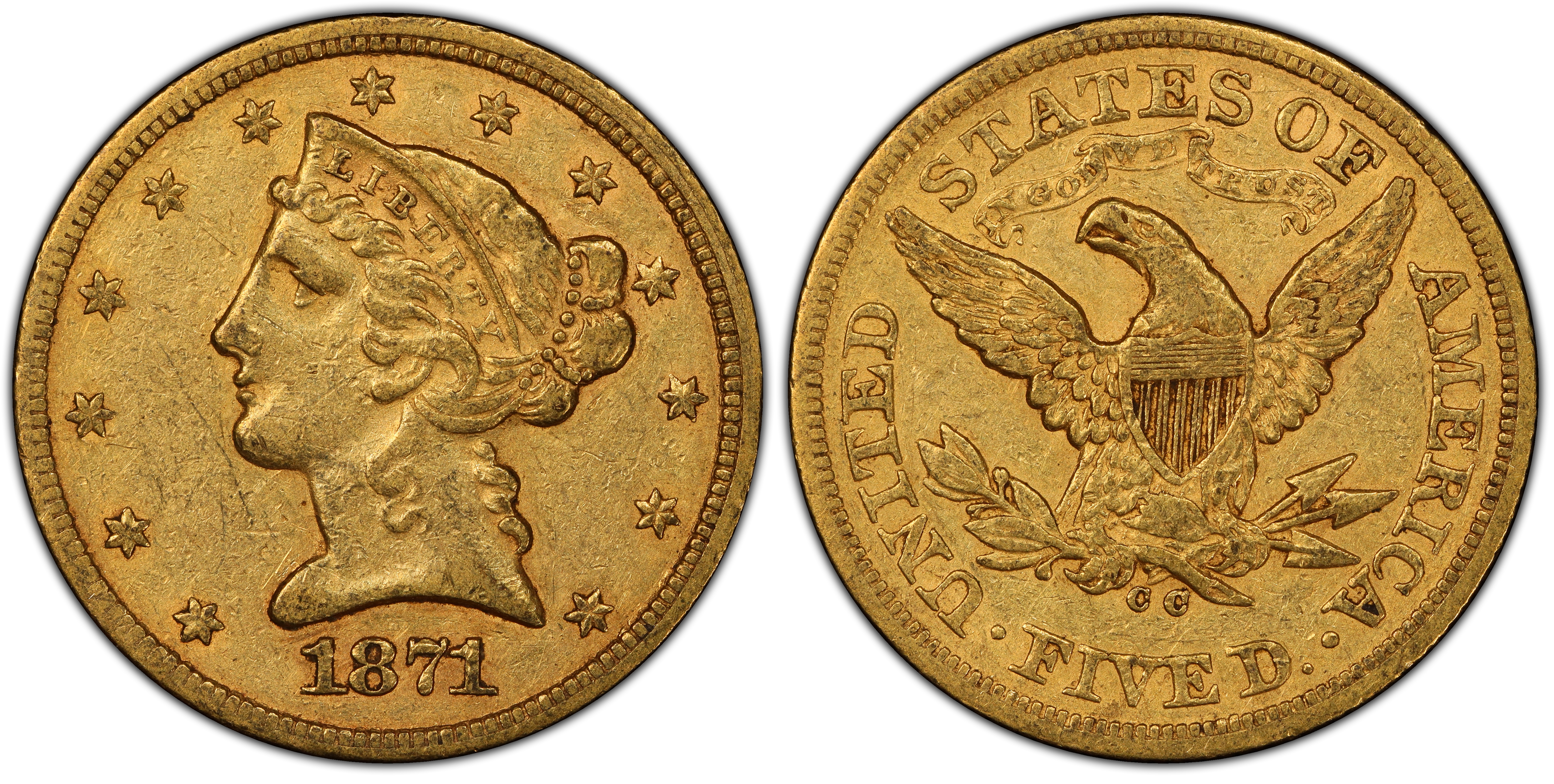 1871-CC $5 XF45 认证号43880969, PCGS号8323