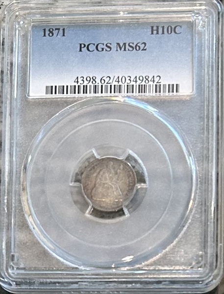 1871 H10C MS62 认证号40349842, PCGS号4398