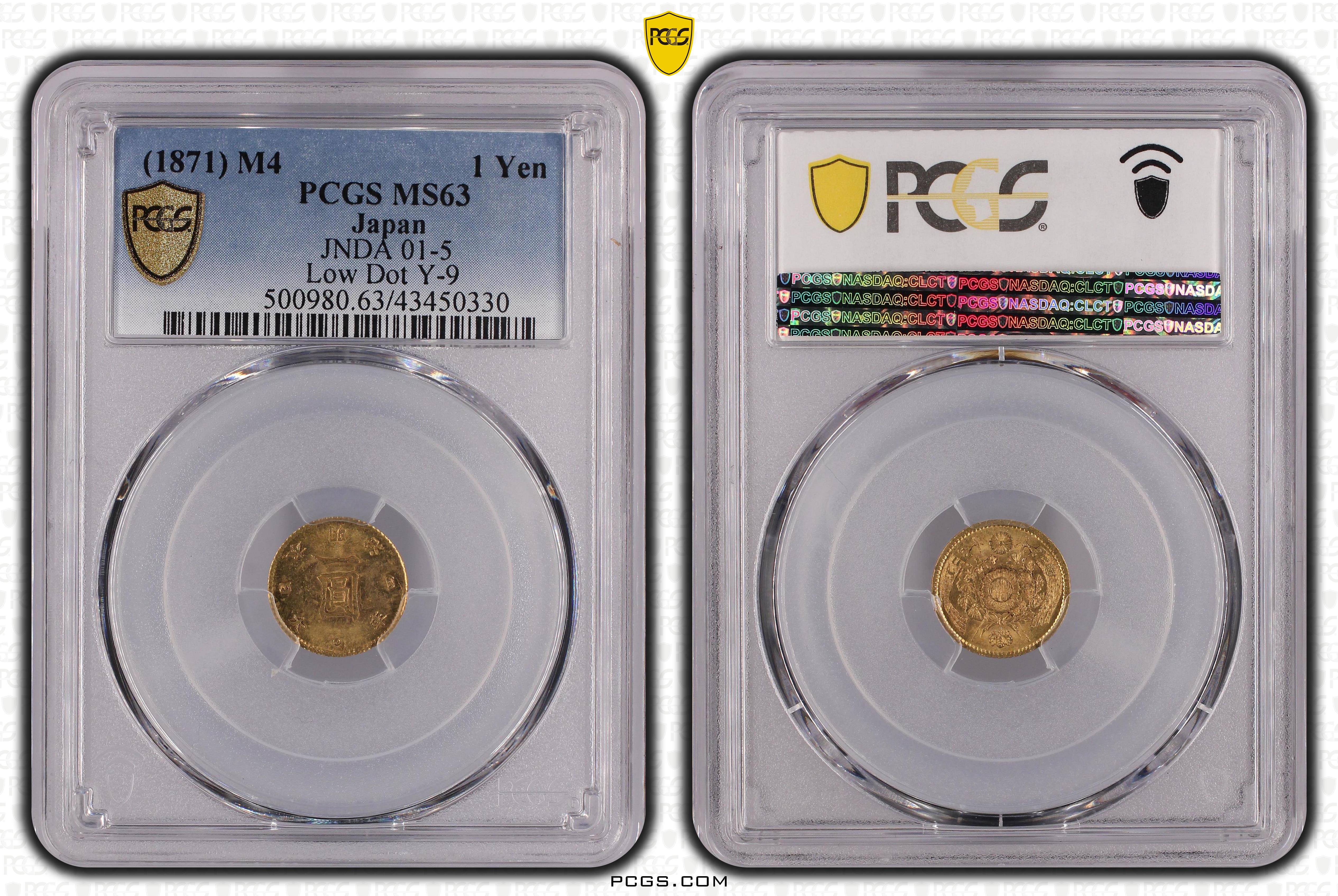 (1871) M4 1 Yen JNDA 01-5 Au Low Dot Y-9 MS63 认证号43450330, PCGS号500980