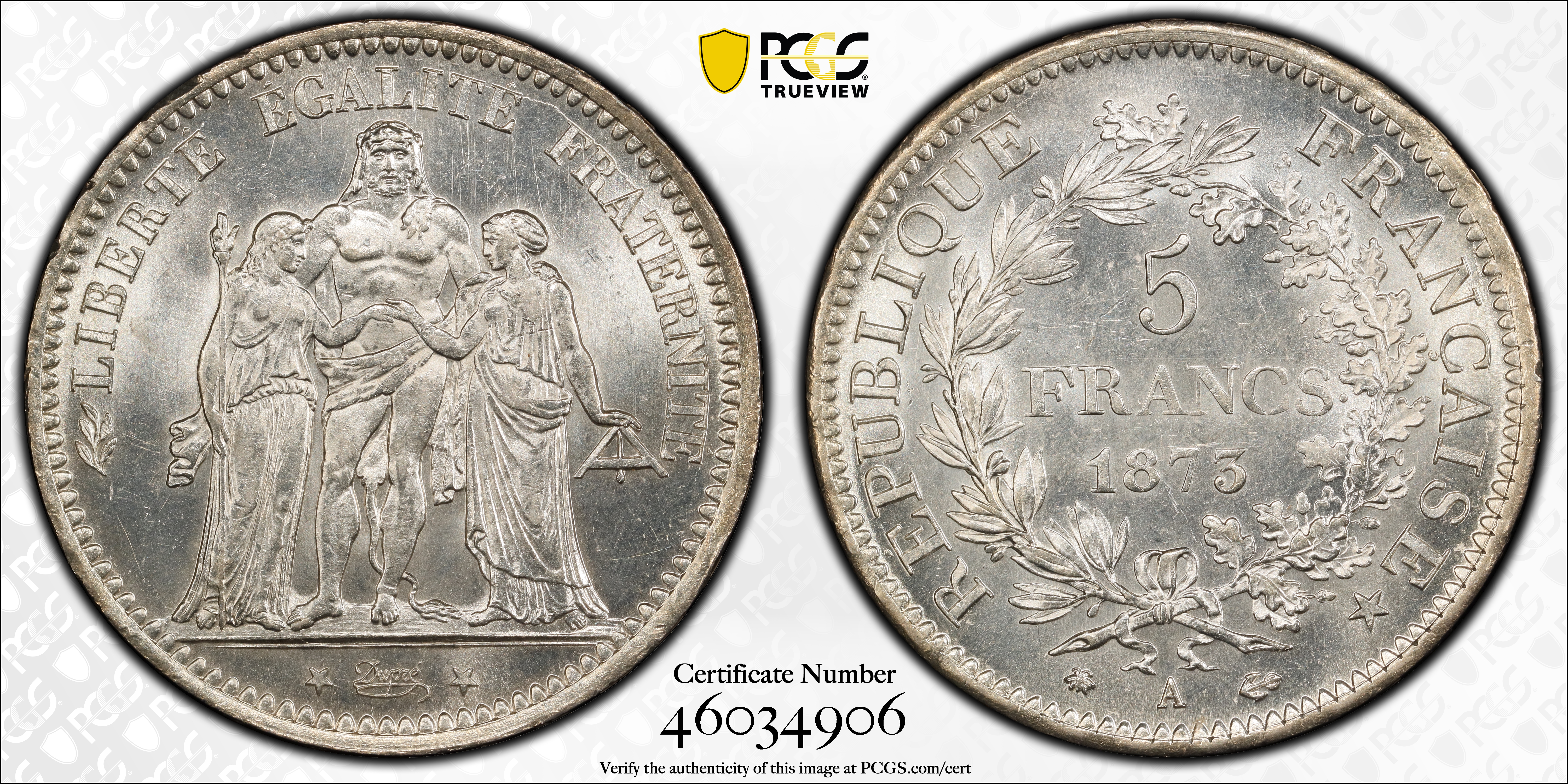 1873-A 5 Fr Gad-745a F-334 MS65 认证号46034906, PCGS号156734