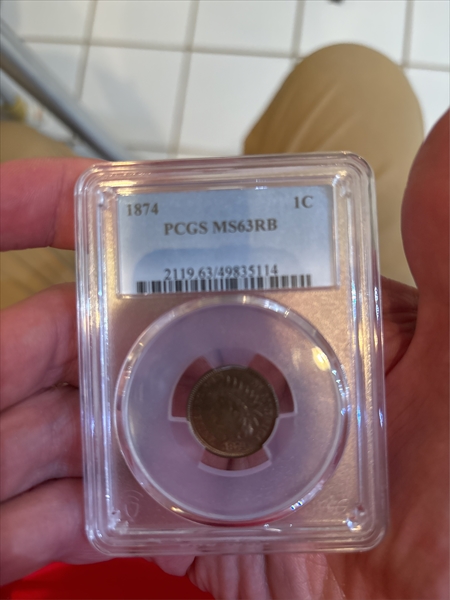 1874 1C, RB MS63RB 认证号49835114, PCGS号2119