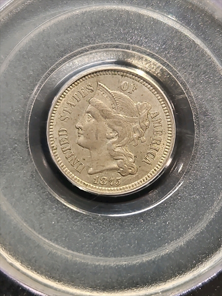 1875 3CN AU58 认证号11695559, PCGS号3743
