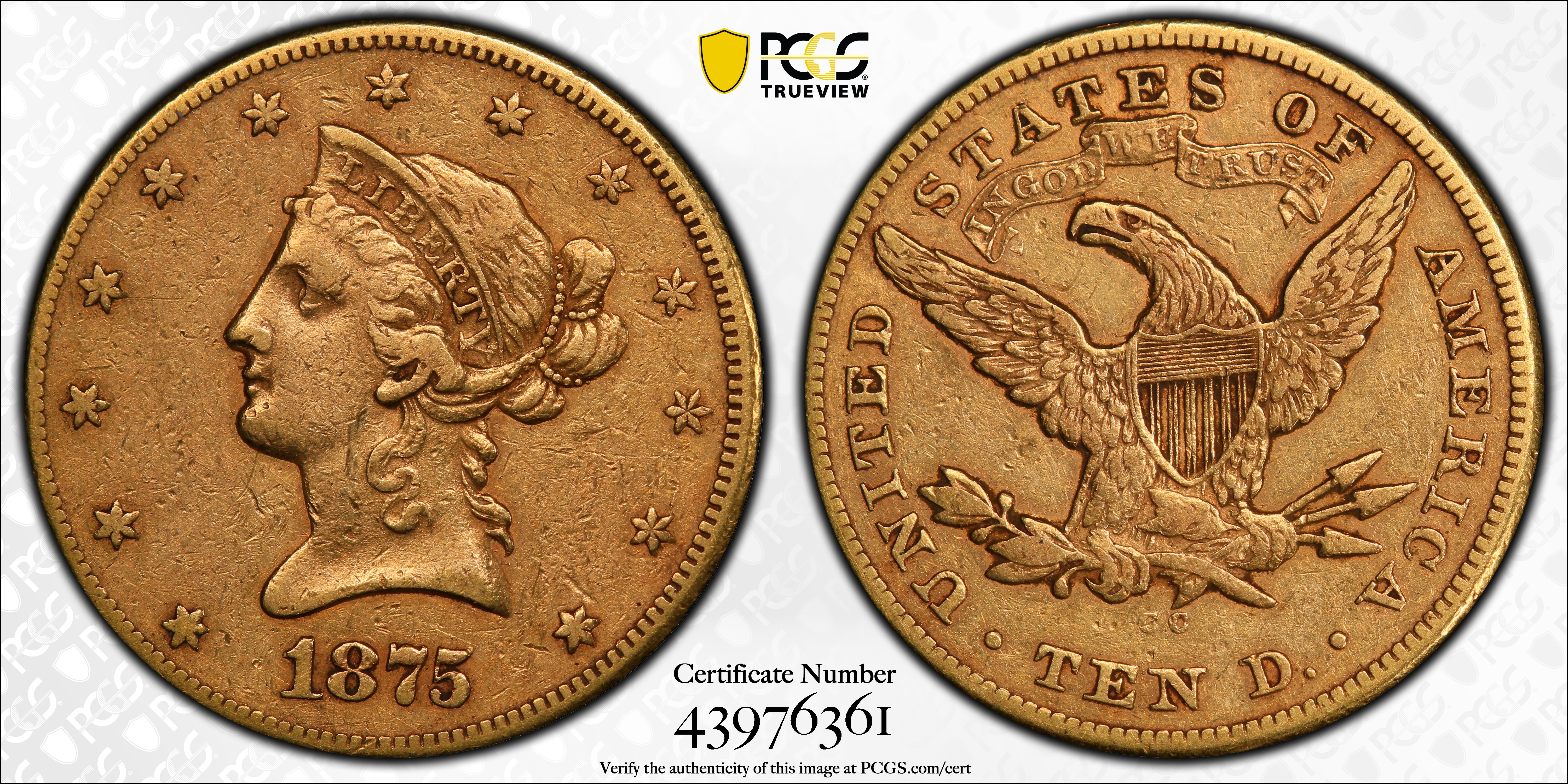 1875-CC $10 VF35 认证号43976361, PCGS号8673