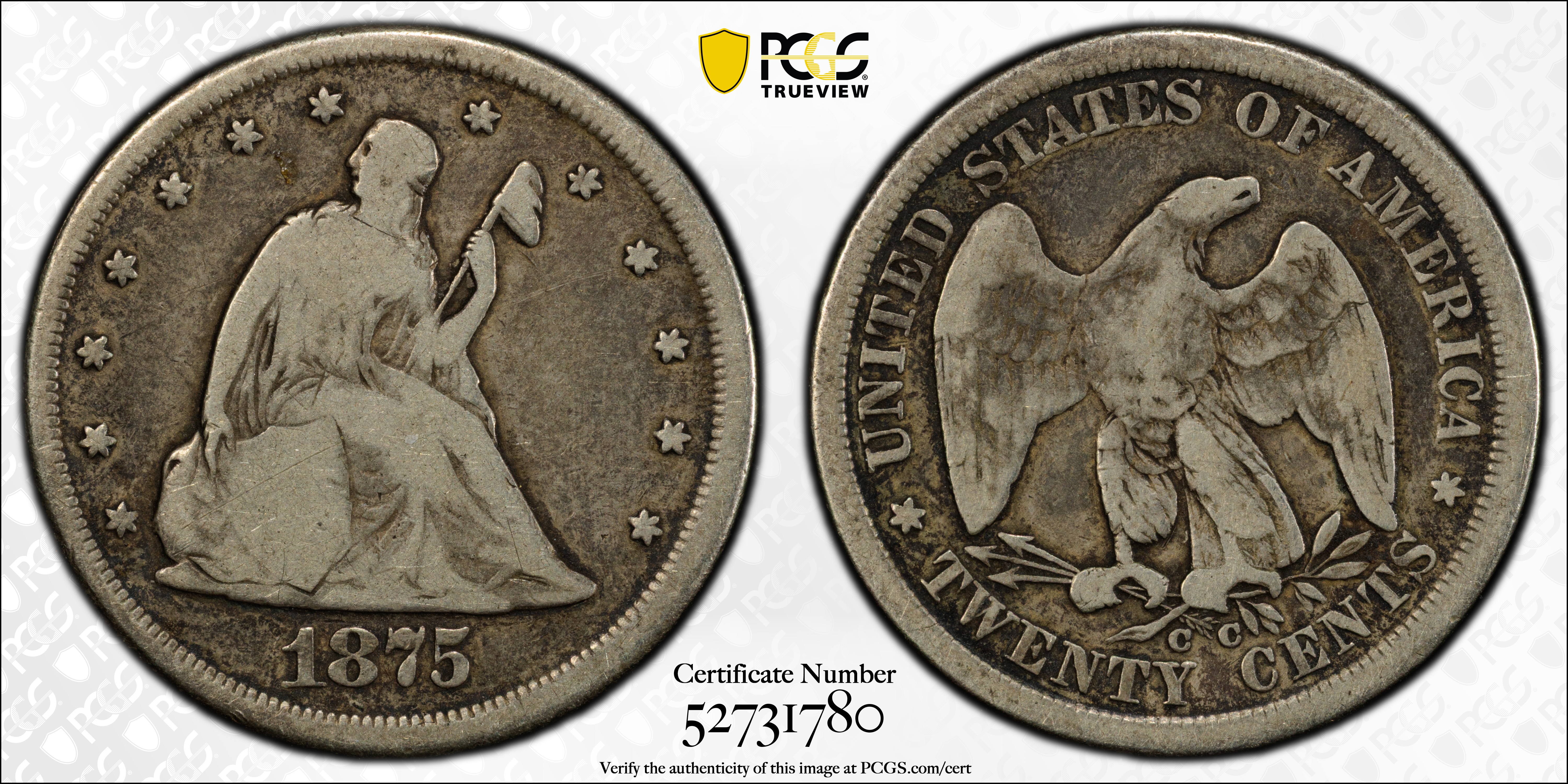 1875-CC 20C VG8 认证号52731780, PCGS号5297