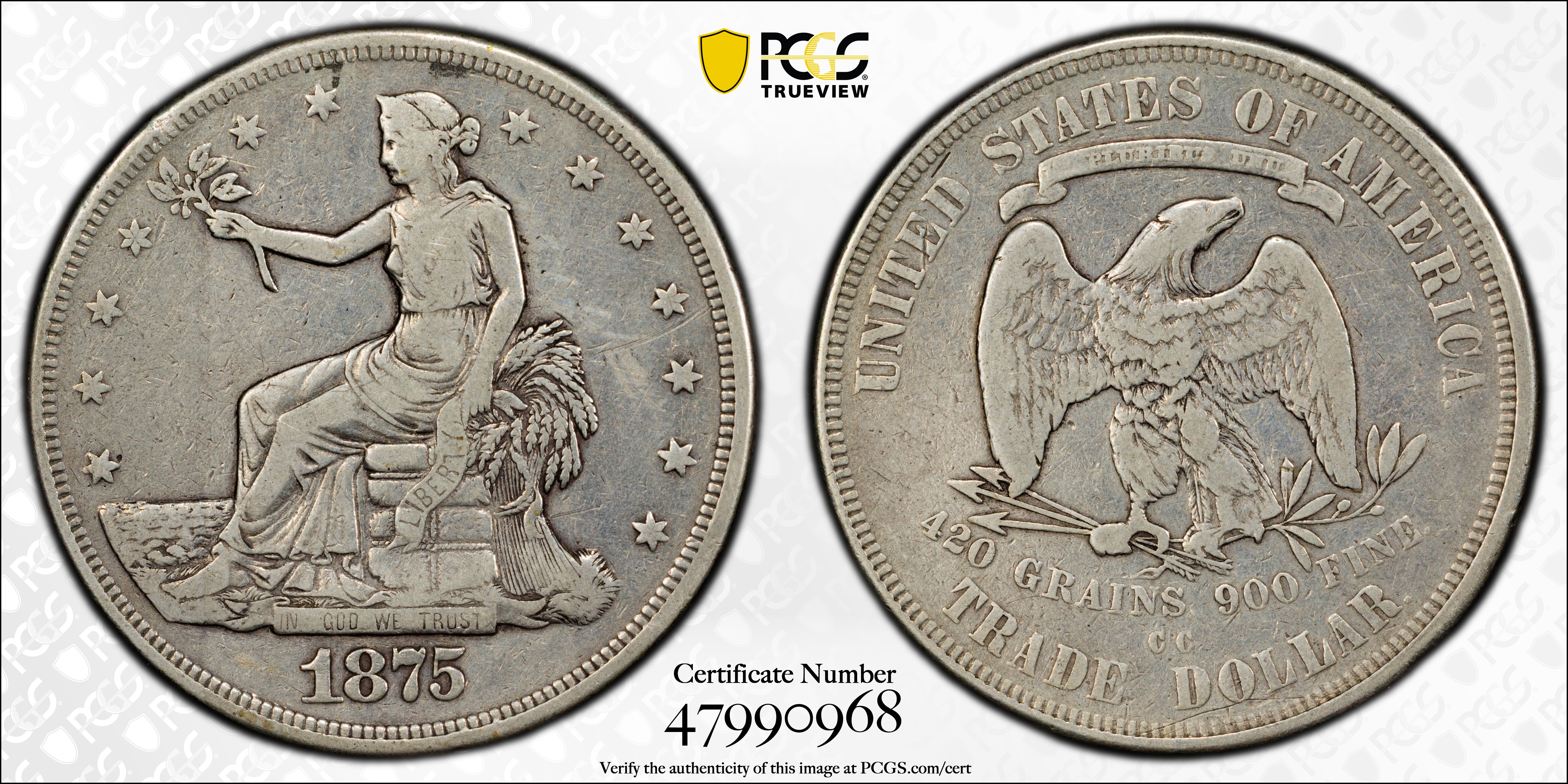 1875-CC T$1 Type-I/II N1 认证号47990968, PCGS号40109