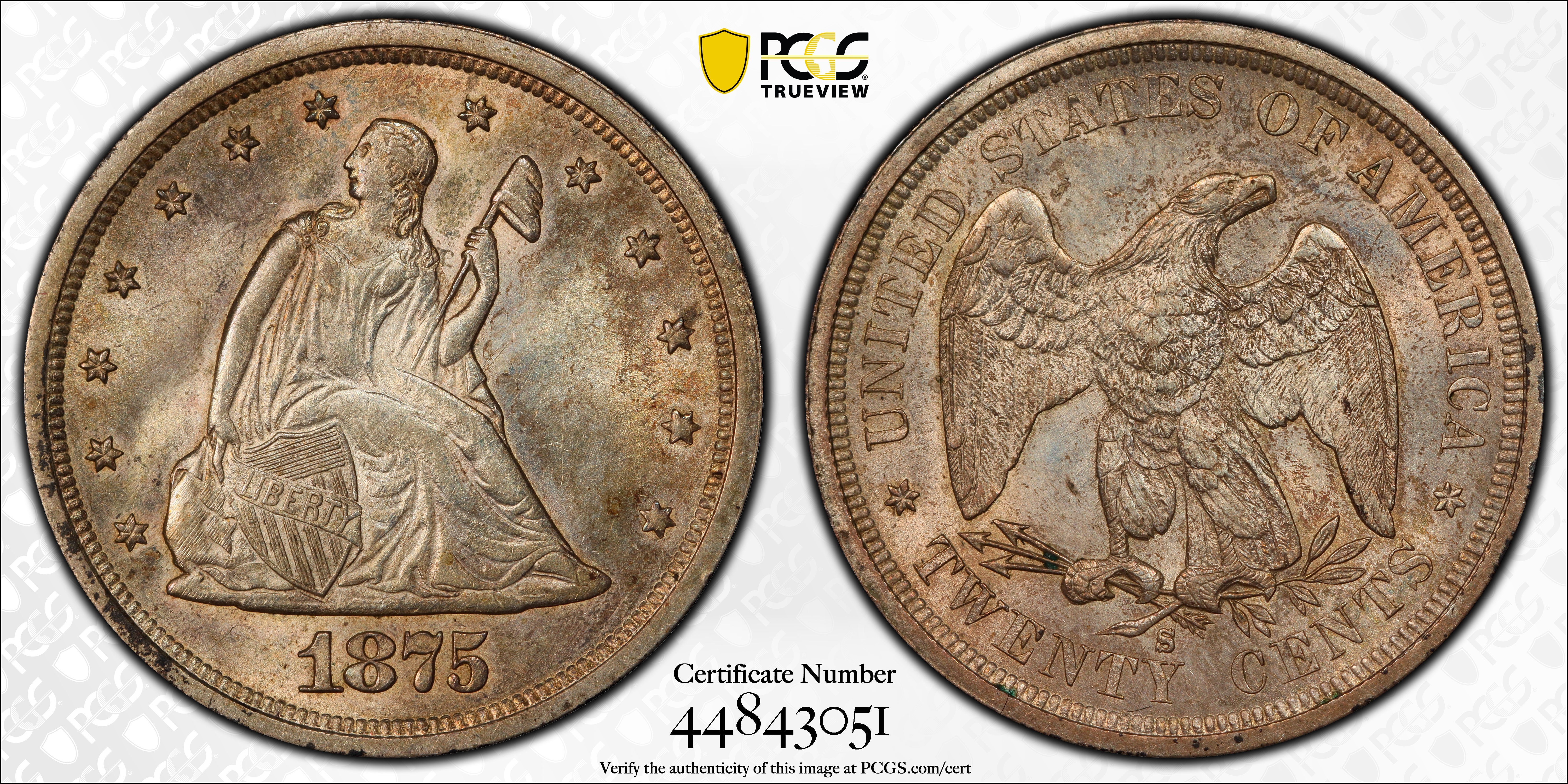 1875-S 20C MS62 认证号44843051, PCGS号5298