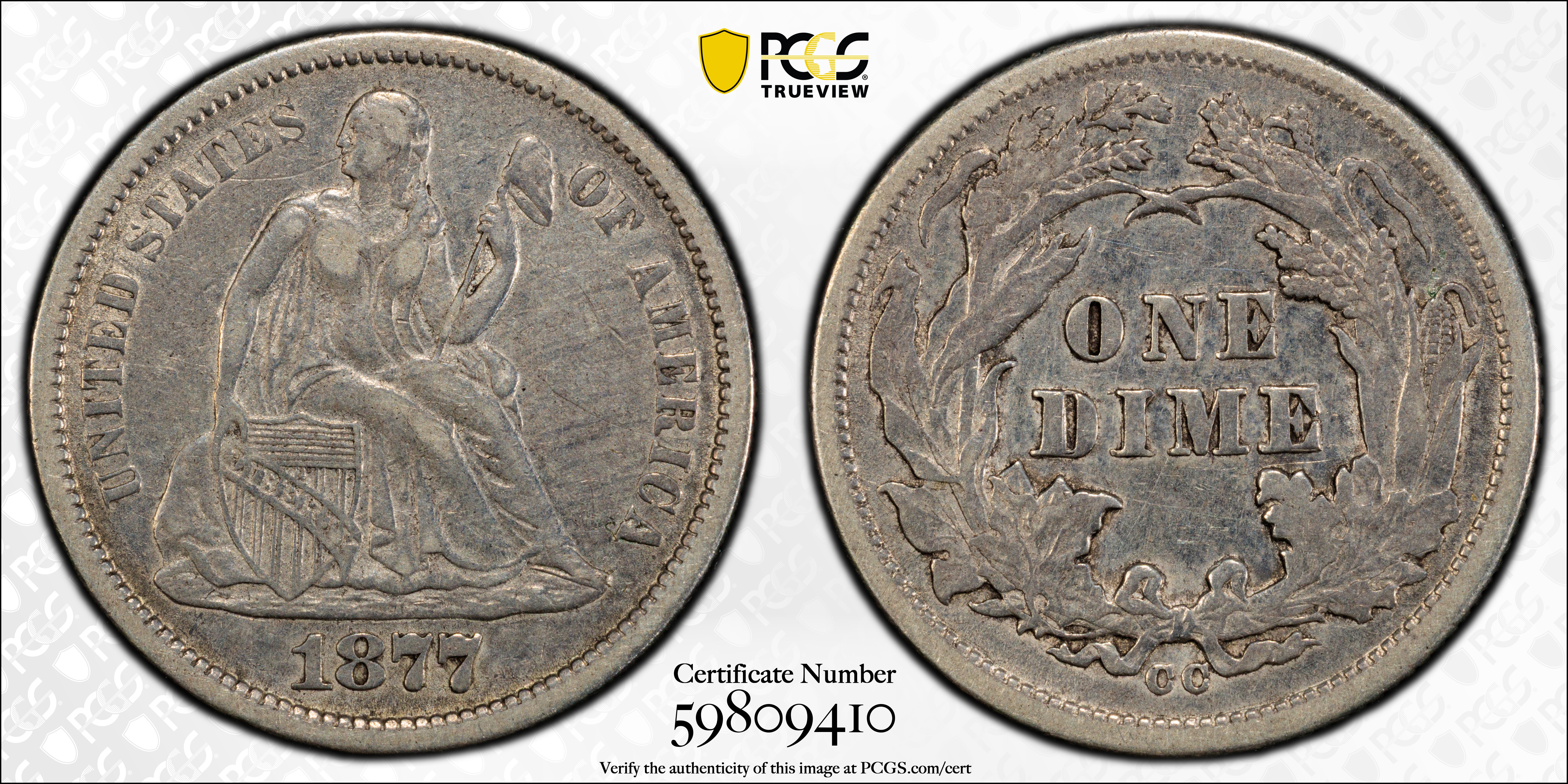 1877-CC 10C XF40 认证号59809410, PCGS号4683