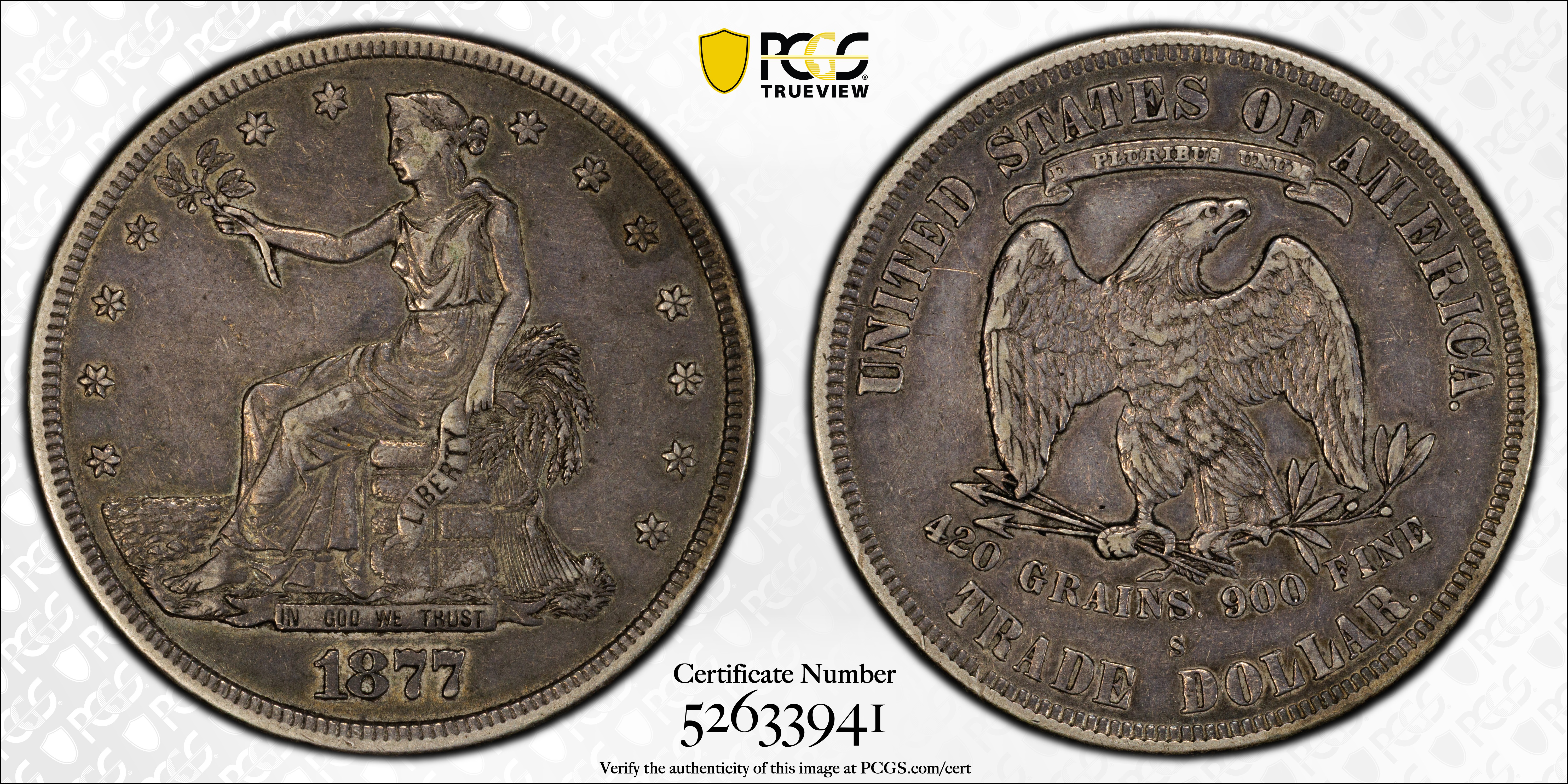 1877-S T$1 XF45 认证号52633941, PCGS号7046