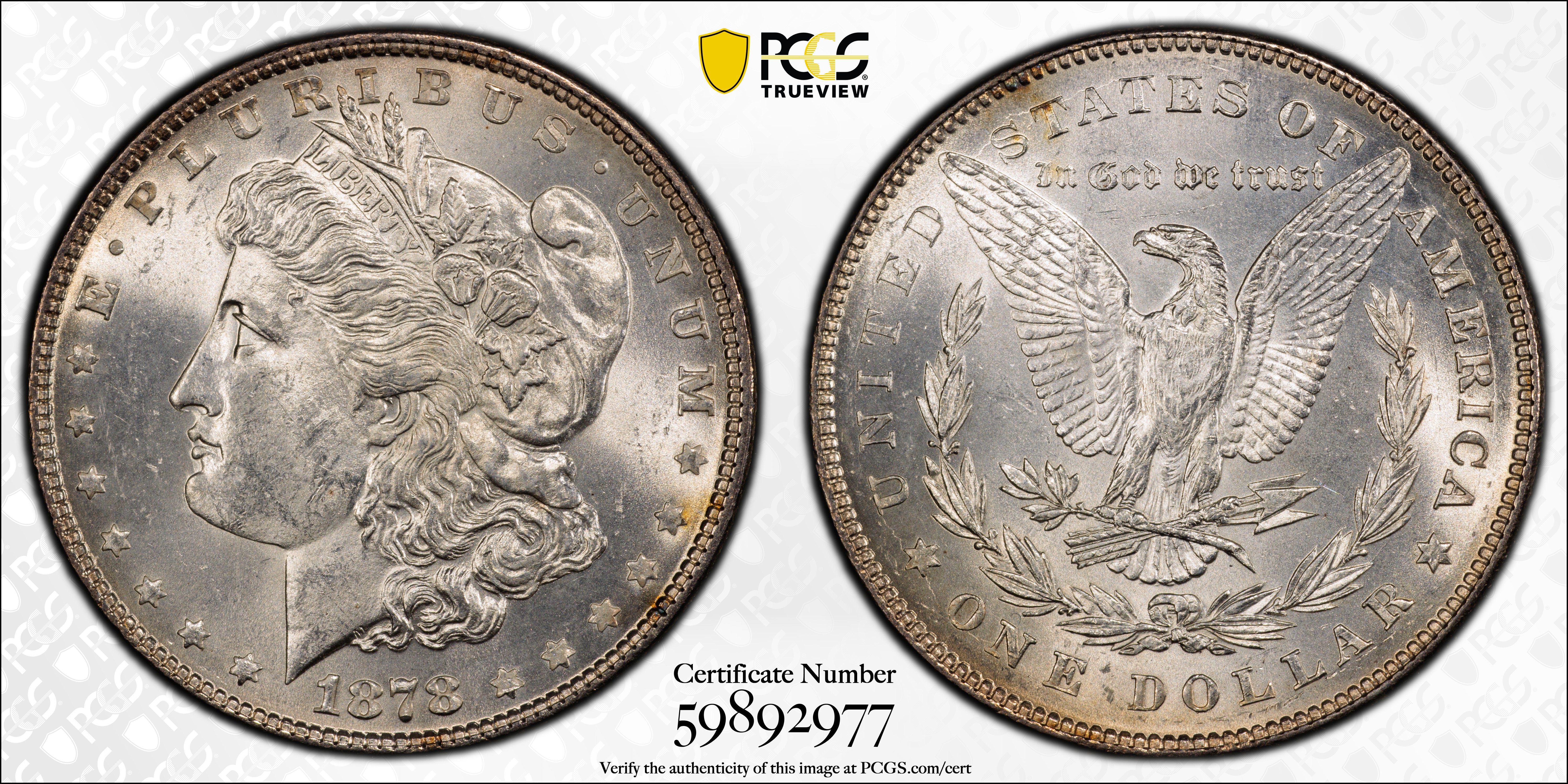1878 7/8TF $1 VAM 33, Doubled Legs MS63 认证号59892977, PCGS号134032