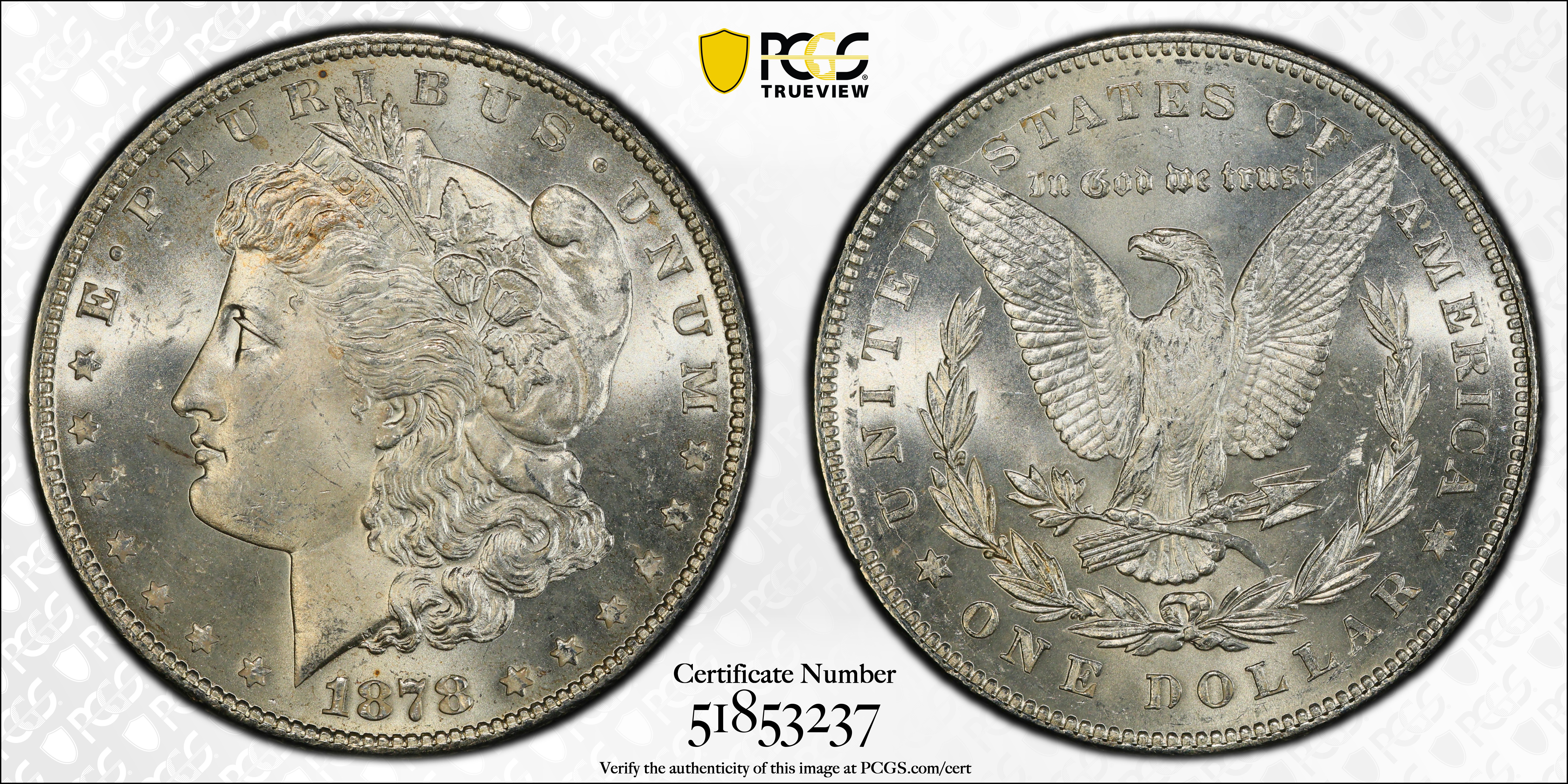 1878 7TF $1 Reverse of 1878 MS64 认证号51853237, PCGS号7074