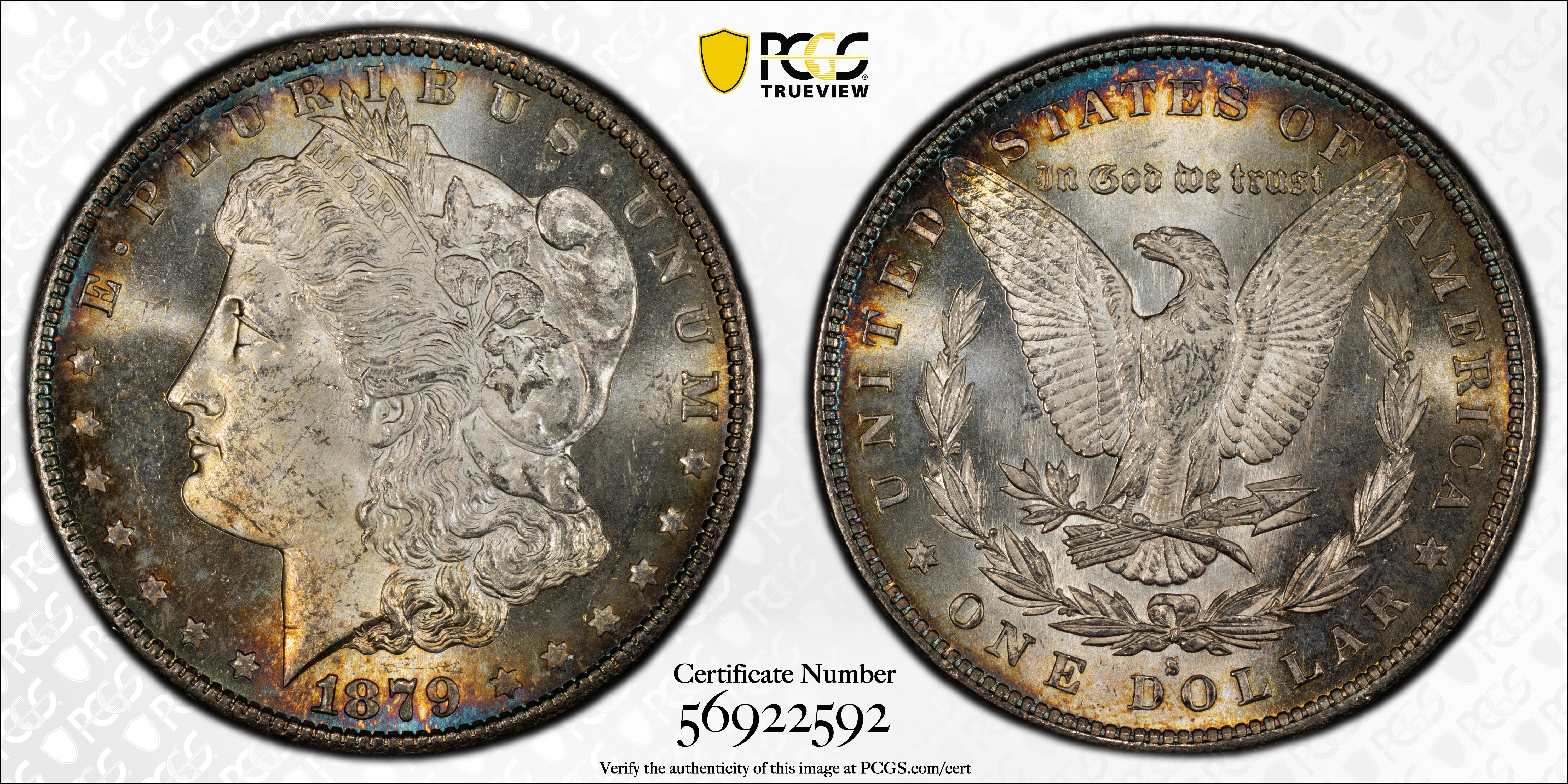 1879-S $1 MS64+ 认证号56922592, PCGS号7092