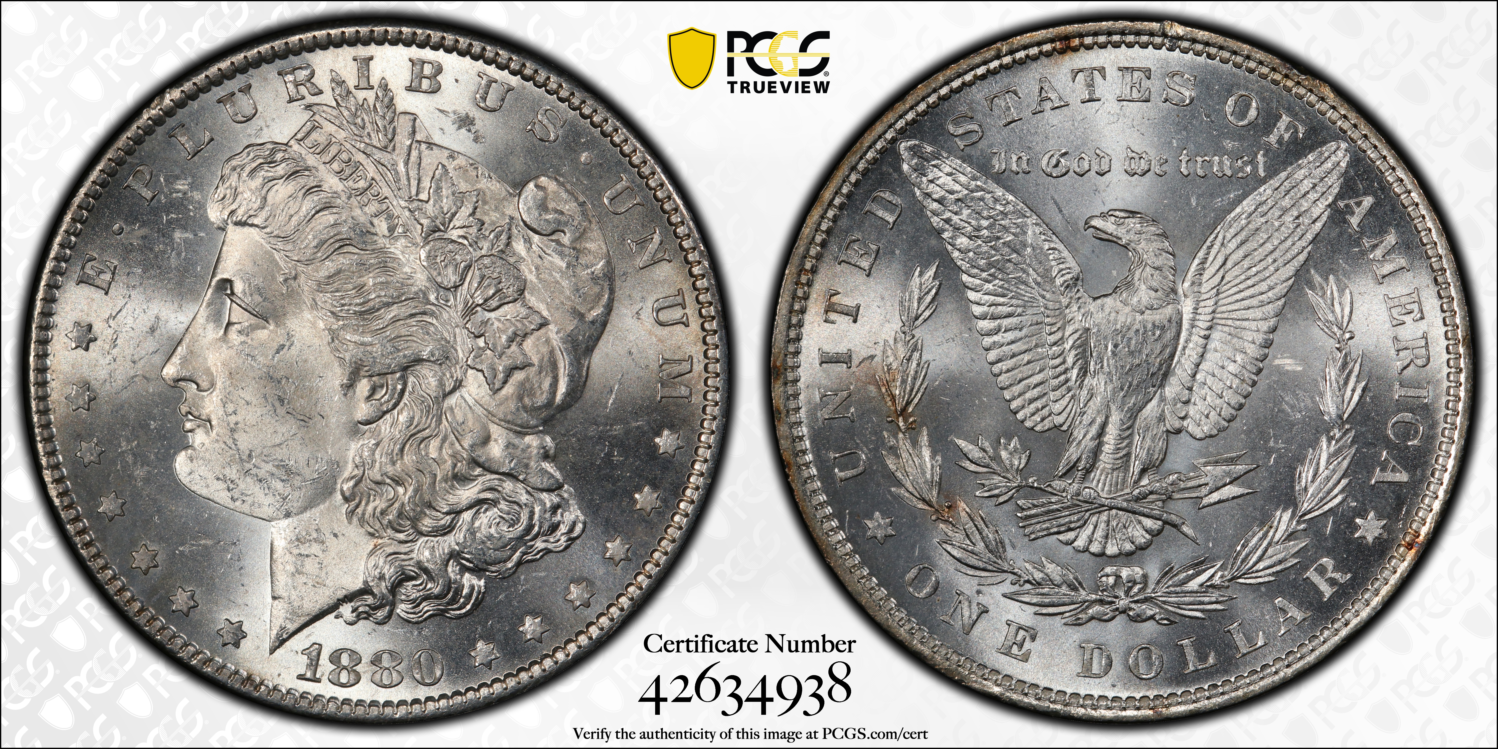1880 $1 MS62 认证号42634938, PCGS号7096