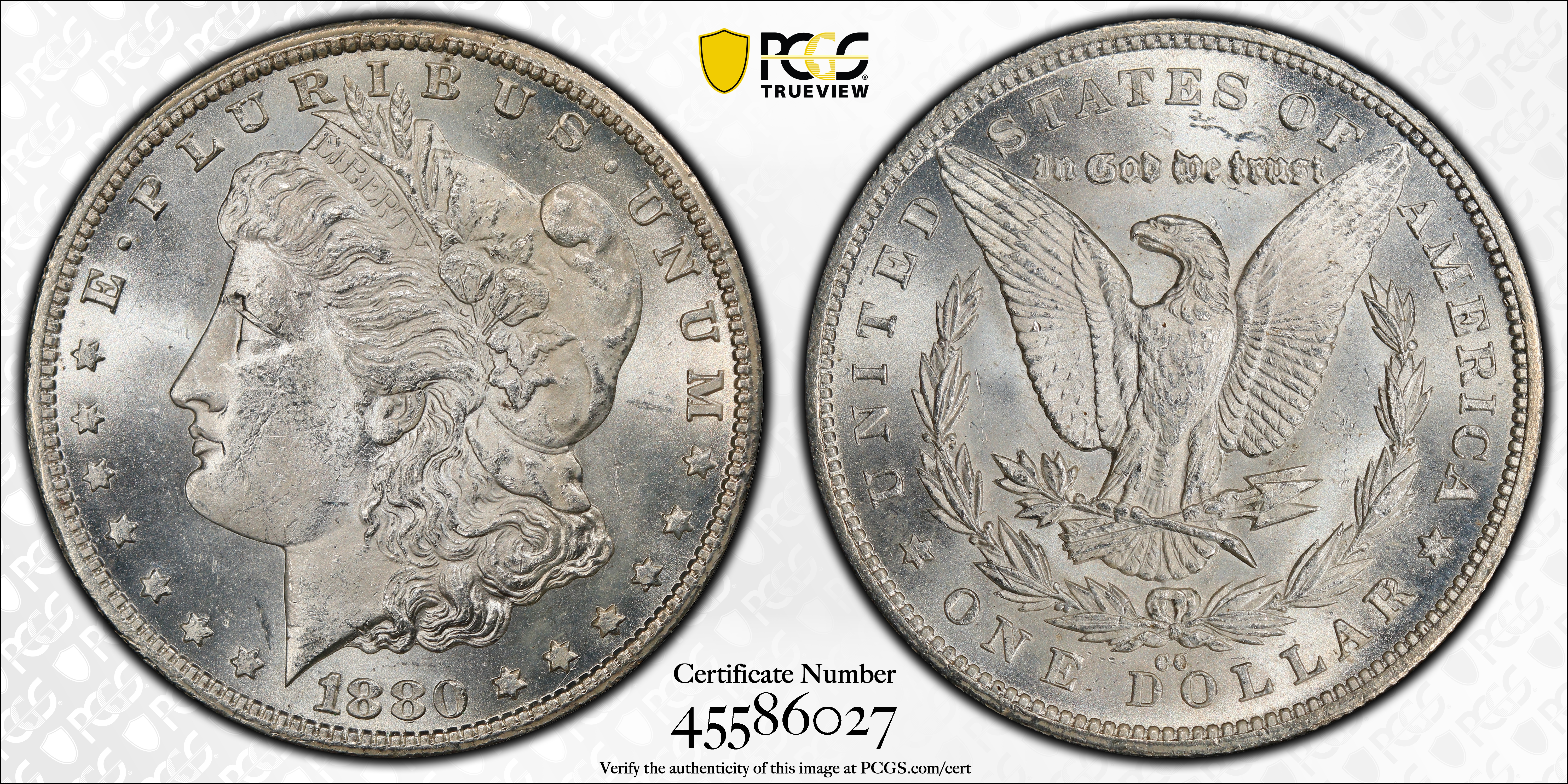 1880-CC $1 MS63 认证号45586027, PCGS号7100
