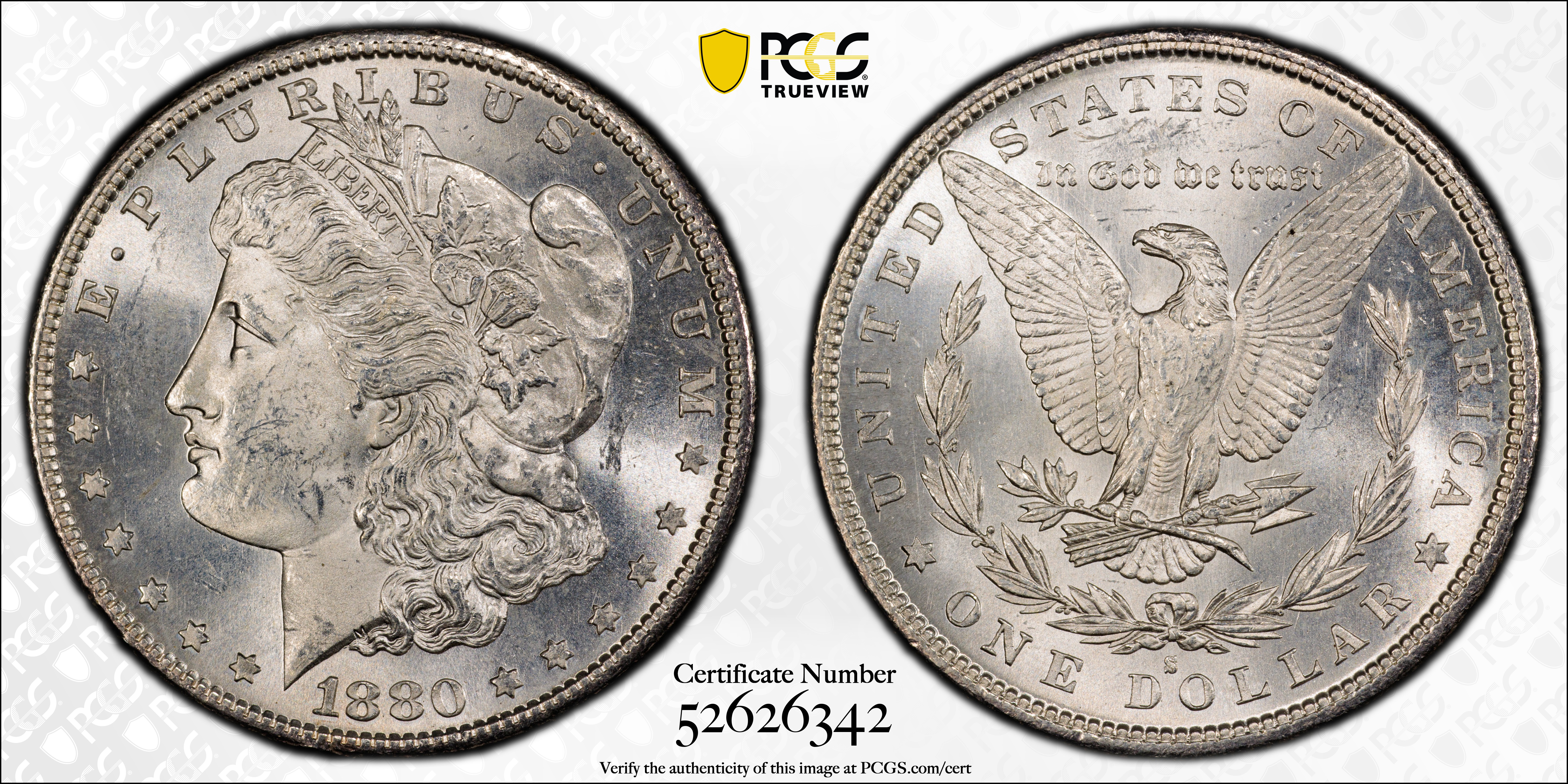 1880-S $1 MS63 认证号52626342, PCGS号7118