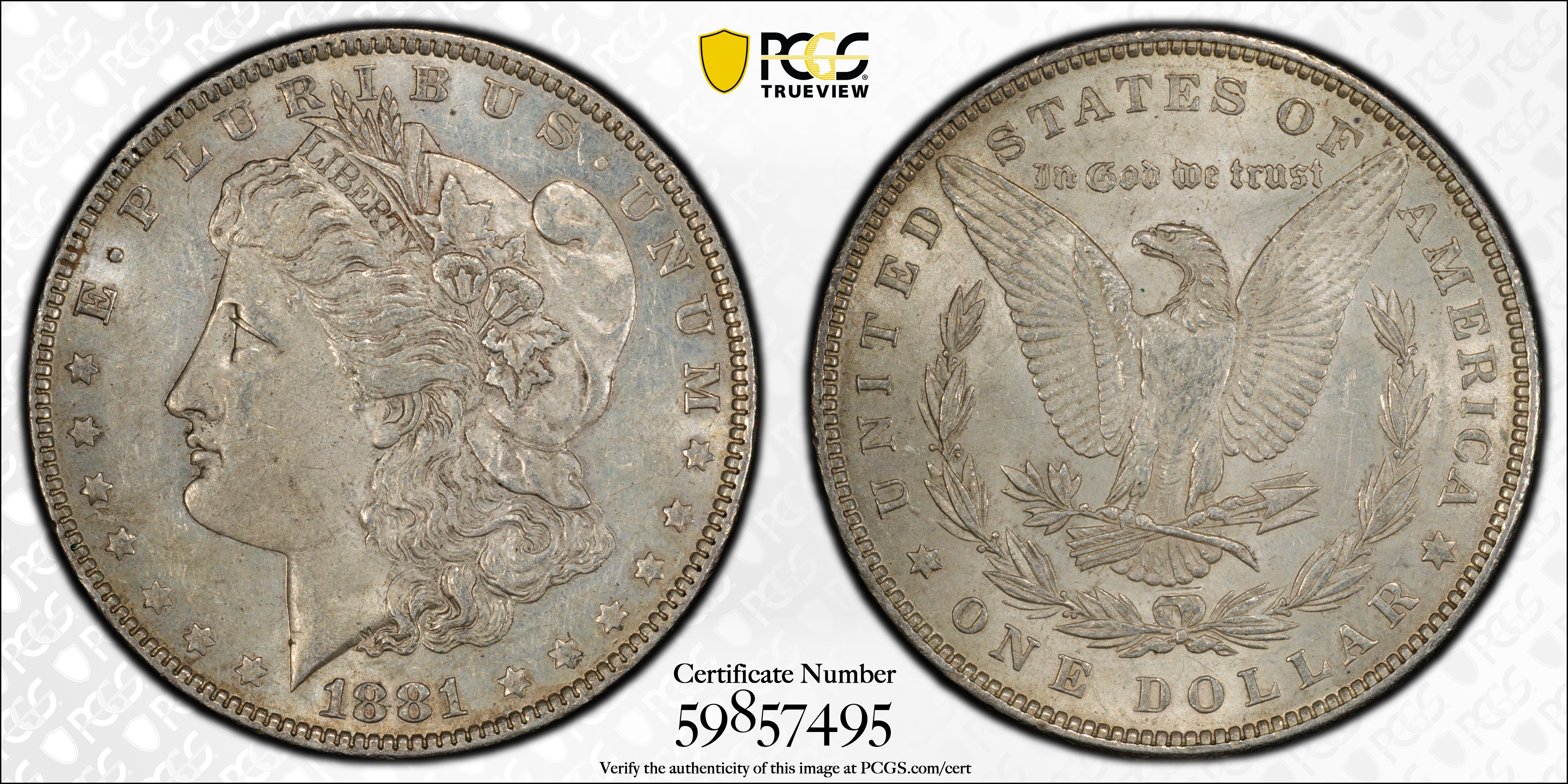 1881 $1 AU58 认证号59857495, PCGS号7124