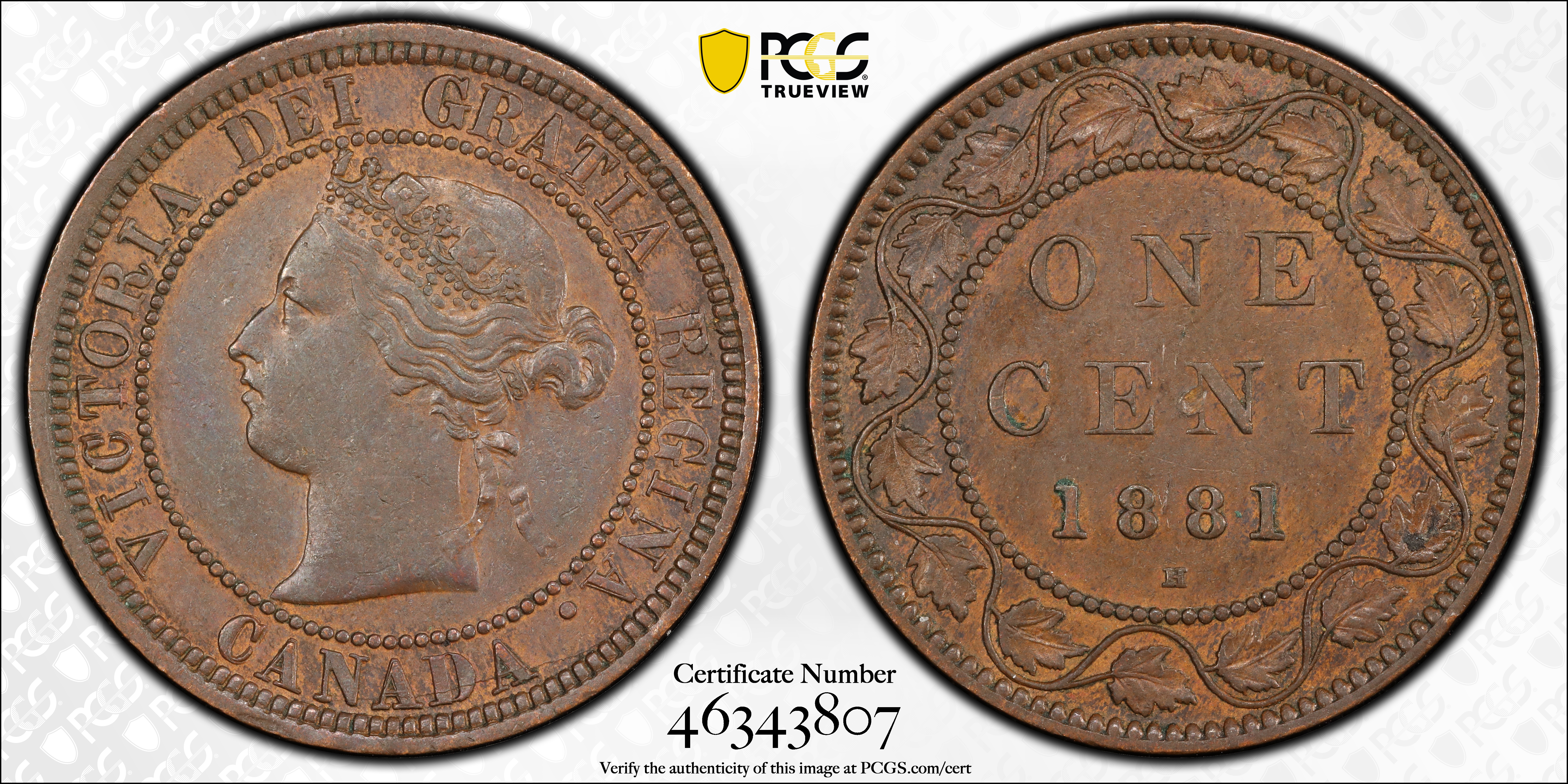 1881-H 1C Doubled Die Obv, BN AU55BN 认证号46343807, PCGS号596404